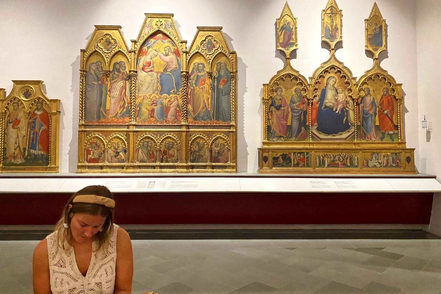 Giv dig hen til en fængslende rejse gennem renæssancekunstens verden og historiske skatte på Firenzes elskede Accademia-galleri med vores ekspertguidede tur. Ved at sikre dig hurtig indgang kommer du nemt uden om de lange køer og får mest muligt ud af din tid i denne kulturelle perle. Mens du vandrer gennem galleriets hellige haller, vil vores certificerede guide afsløre det rige tapet af kunst og historie, der venter dig. Du vil stå i henført beundring foran Michelangelos originale 'David'-skulptur, et symbol på kunstnerisk genialitet. Glæd dig over mesterværker af berømte kunstnere som Giambologna og Botticelli, der hver især er et vidnesbyrd om deres tids uovertrufne kreativitet. Men magien stopper ikke her. Gå ind i Conservatorio Luigi Cherubini og bliv fortryllet af en samling af sjældne musikinstrumenter, herunder en bemærkelsesværdig Stradivarius-violin fra 1690. Denne musikalske skat, omhyggeligt fremstillet af den legendariske Antonio Stradivari, føjer endnu en kulturel rigdom til din rejse gennem Accademia Gallery. Forbered dig på at blive fortryllet, oplyst og inspireret, når du udforsker dette sandfærdige skatkammer af kunst og historie, guidet af vores ekspert, som vil bringe hvert mesterværk og historiske artefakt til live med indsigtsfulde kommentarer. Dit besøg på Accademia-galleriet bliver en dybt berigende oplevelse, som efterlader dig med gode minder om Firenzes kulturelle arv.Includes