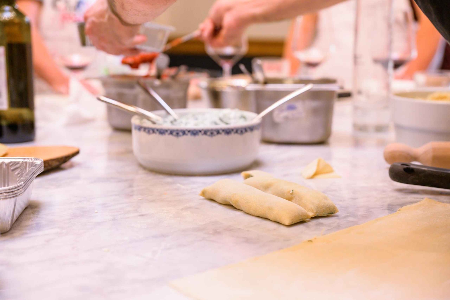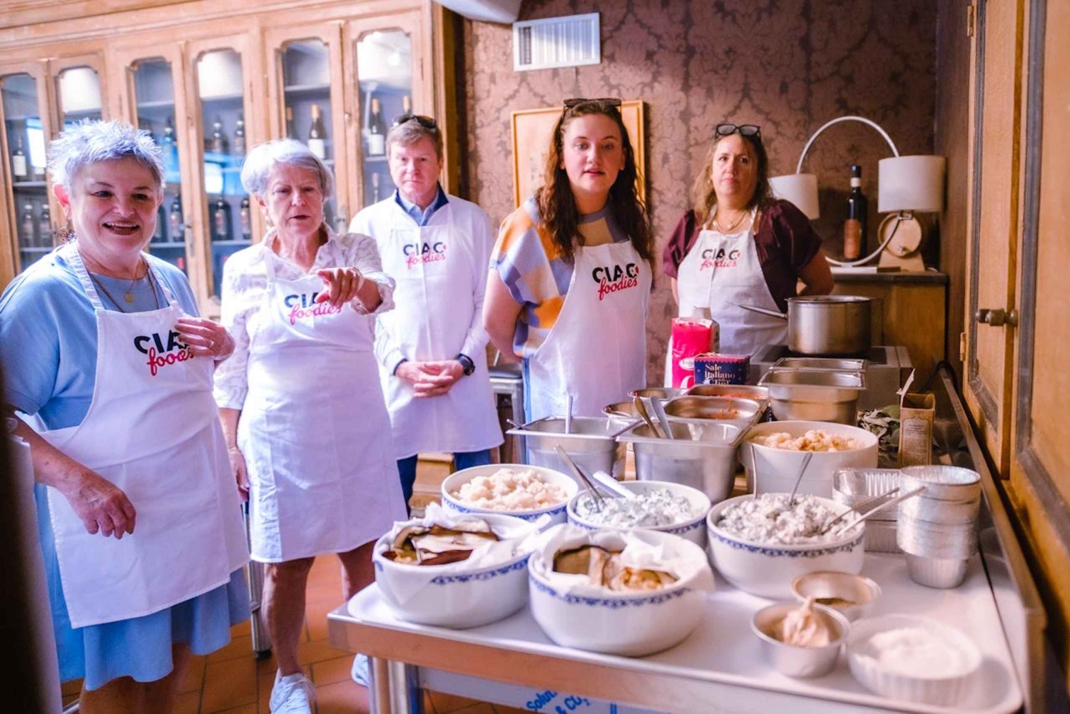 Træd ind i hjertet af det toscanske køkken med en praktisk madlavningsoplevelse i Firenze. Besøg Sant'Ambrogio-markedet, slentre gennem de livlige boder og vælg de bedste ingredienser til din madlavningskursus. Derefter går du til et indbydende køkken og smøger ærmerne op for at tilberede en komplet traditionel italiensk menu fra bunden. Start dit eventyr med et guidet besøg på det historiske Sant'Ambrogio-marked (kun inkluderet i morgenafgangen undtagen søndage og helligdage), Firenzes mest elskede madmarked. Slentre gennem de livlige boder fyldt med friske sæsonvarer, håndlavede oste, røget kød og lokale specialiteter. Med din kok ved din side kan du håndplukke de bedste ingredienser til din madlavningskursus og få indsigt i, hvordan man vælger italienske kvalitetsprodukter som en ægte florentiner. Når du har samlet dine markedsskatte, er det tid til at komme i gang med madlavningen. Begiv dig til et indbydende køkken og smøg ærmerne op for at tilberede en komplet traditionel italiensk menu fra bunden. Under kyndig vejledning af din kok lærer du teknikkerne bag fire udsøgte retter: - Agnolotti fyldt med cremet kartoffel og sprød pancetta - Cannelloni fyldt med ricotta og spinat, toppet med en lækker tomat- og bechamelsauce - Aubergine Parmigiana, en klassisk italiensk ret med lag på lag af rige smage - Panna Cotta, den ikoniske italienske dessert, serveret med marmelade, chokolade eller pistacchiosauce efter eget valg Under hele lektionen vil din kok dele fascinerende kulinariske historier, insider-tips og traditionelle teknikker, der bringer disse elskede opskrifter til live. Føl dig som en ægte italiensk kok, mens du ælter, blander og skaber hver ret fra bunden. Når madlavningen er færdig, er det tid til at nyde. Sæt dig ned sammen med dine medmadelskere og nyd den lækre måltid, du har tilberedt, ledsaget af et glas fin toscansk vin. Nyd hver eneste bid, mens du nyder den varme, hyggelige atmosfære i en autentisk italiensk madoplevelse.Includes