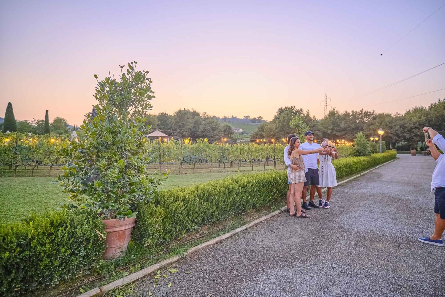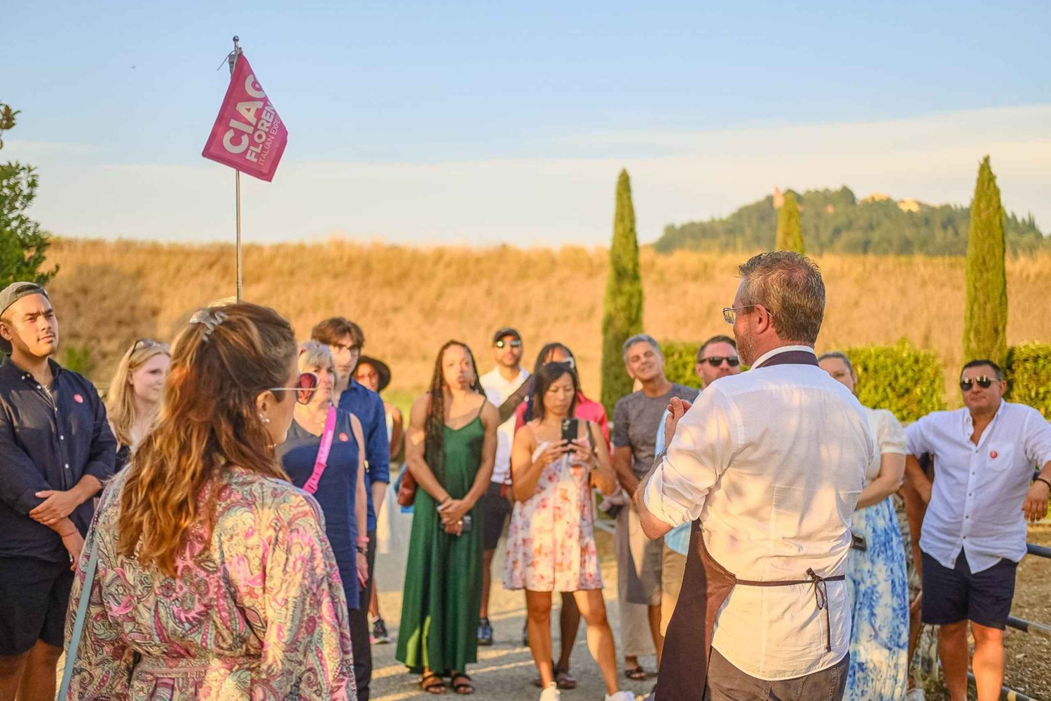 Genieße atemberaubende Aussichten und traditionelles italienisches Essen bei einer Nachmittagstour durch die Chianti-Weinregion in der Toskana. Begleite deinen Reiseleiter, wenn du Florenz verlässt und dich auf das Land begibst, um dein kulinarisches Abenteuer zu beginnen. Dein erster Halt ist ein familiengeführtes Weingut. Nimm an einer Führung durch das Weingut teil und erhalte einen Einblick in die Arbeitsweise des Betriebs. Besuche die Weinberge und Keller und erfahre, wie der weltberühmte Chianti-Wein hergestellt wird. Nimm an einer Weinverkostung teil und probiere einige der besten Chianti-Weine zusammen mit frischem Olivenöl und leckeren toskanischen Snacks. Wenn die Sonne untergeht, machst du dich auf den Weg zu deinem letzten Ziel des Tages, einem weiteren Weingut. Setz dich hin und genieße ein köstliches Abendessen mit toskanischen Spezialitäten der Saison. Jeder Gang wird mit einem der exquisiten Weine dieses Weinguts begleitet.Includes