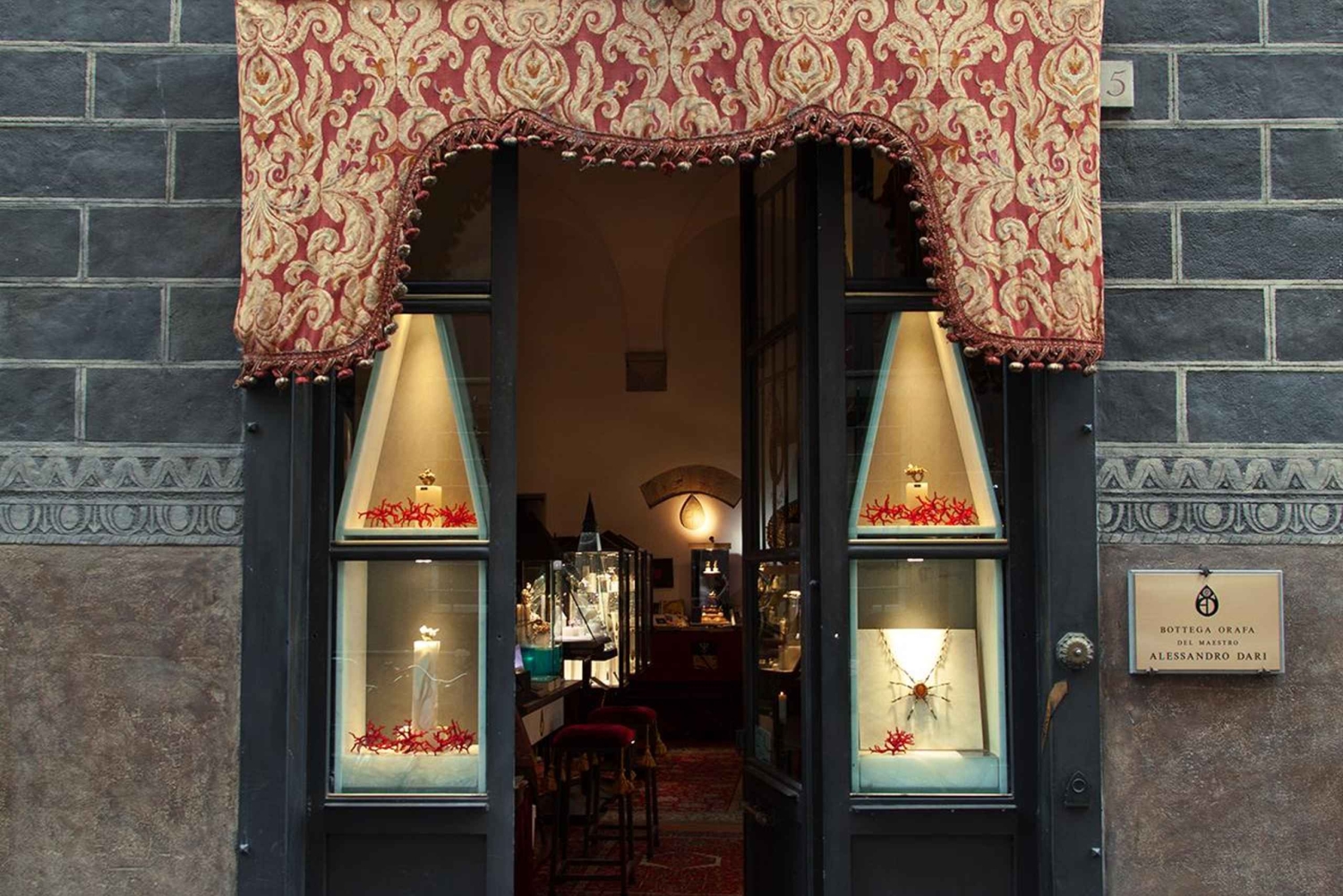 El museo de joyas se encuentra en el palacio Nasi-Quaratesi, situado en la zona de Oltrarno: el corazón del arte renacentista de la ciudad. El Atelier-Museo está vivo desde hace más de 30 años gracias al maestro Dari, descendiente de una familia de artistas del siglo XVII. Alrededor de 1547, en el interior del museo, tras un corrimiento de tierras de la colina de arriba, se encontró el cuadro de Rafael 'La Virgen del Jilguero', regalo de bodas del propio Rafael a la familia Nasi-Quaratesi. Durante el Renacimiento, Andrea Quaratesi, conocido amante de Miguel Ángel, vivió en el palacio. Todo el barrio rebosaba de aquellos artistas y artesanos que hicieron famosa a Florencia por su belleza. El maestro AD quiso, dentro del museo, crear un mundo en el que la historia de la joyería volviera a la vida. En sus formas, la joya cuenta historias y acontecimientos, en un viaje que comienza en la Edad Media hasta nuestros días, todavía llenos de misterios. Para el Maestro, la Alquimia es un alimento espiritual indispensable para que la materia se cure y reviva en nuevas formas, que ella misma da a conocer al Maestro, donde se convierte así en el vínculo entre dos mundos, uno real y otro imaginario. Alessandro Dari combina por primera vez en la joya las formas arquitectónicas del pasado, donde la sección áurea se convierte en una guía indispensable, creando anatomías y formas insólitas en la historia de este arte. De aquí salen grandes obras como la colección de 'Iglesias' y 'Castillos'. Las obras musicales; la historia de la Florencia alquímica y la poesía medieval forman el telón de fondo. Todos estos matices se combinan para dar vida, en 2002, a una nueva forma de Arte: El Dinamismo Perceptivo. Aquí las obras no tienen necesariamente un estado dinámico, sino que expresan la mutación y el cambio que viven dentro de nosotros. En esta nueva forma artística, el artista propone al Miguel Ángel inacabado. El arte vive en nosotros sólo si da emoción: un estado dinámico no pasivo interactúa con la obra que pertenece a todos los que saben sentirla. Cada colección tiene una breve historia que se manifiesta en cada joya realizada personalmente por el Maestro en los materiales más variados; el Blutonio, una aleación alquímica, es utilizado habitualmente por él para sus obras más importantes. Dentro del museo donde trabaja el maestro hay una prestigiosa escuela que sólo puede acoger a 7 alumnos: un nuevo método de enseñanza donde la joya no es sólo un adorno, sino escultura y emoción. Muchas obras se exponen en museos florentinos y del mundo y numerosos son los premios artísticos recibidos en los últimos 20 años. El Premio Perseo como mejor artista de la ciudad; El Artista Elegido del Vaticano, Embajador de la Joya Italiana y Ganador del evento mundial Artistar Jewels....sólo por mencionar algunos. El Museo Atelier contiene unas 1.400 obras divididas por periodos históricos y expuestas en dos niveles.Includes