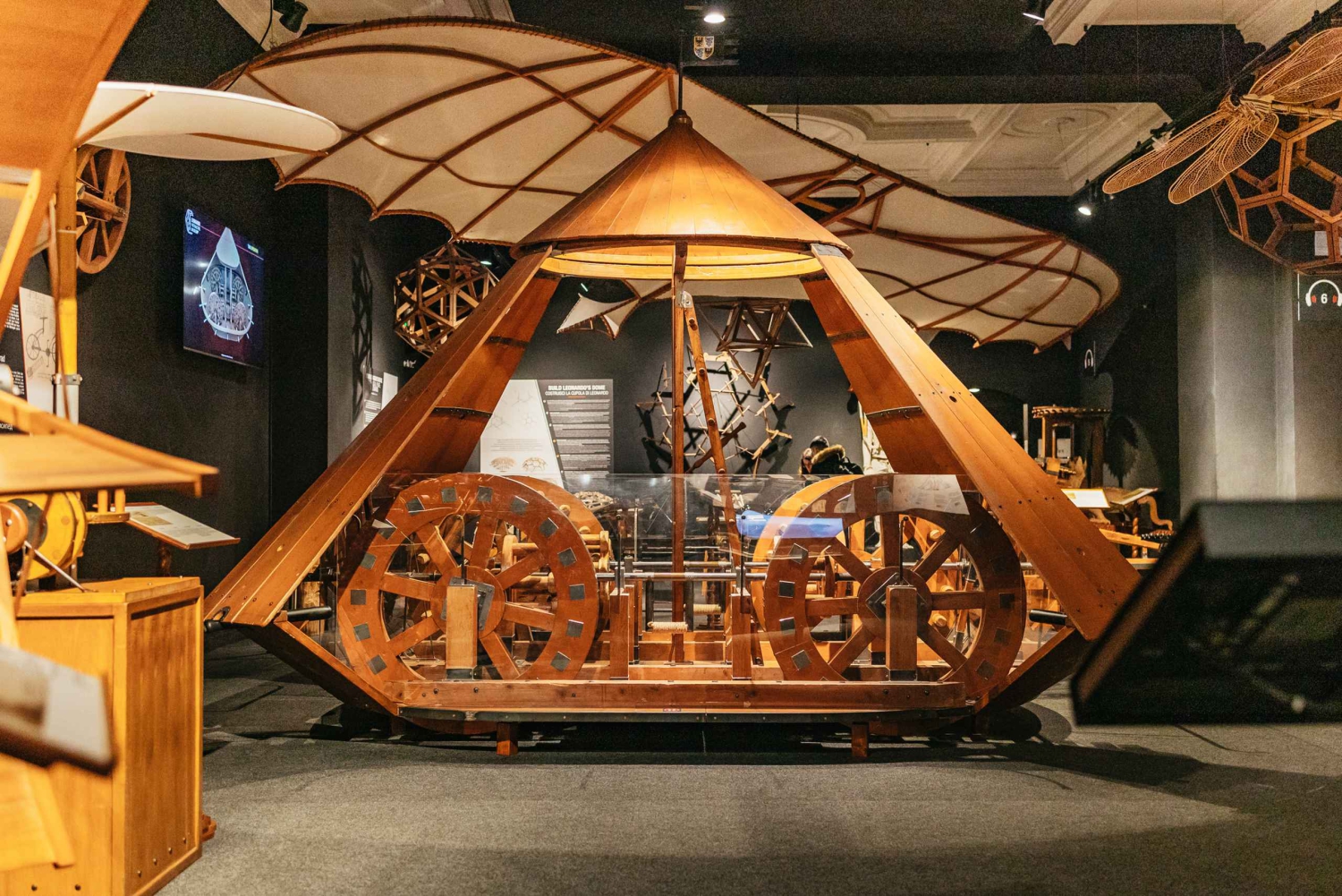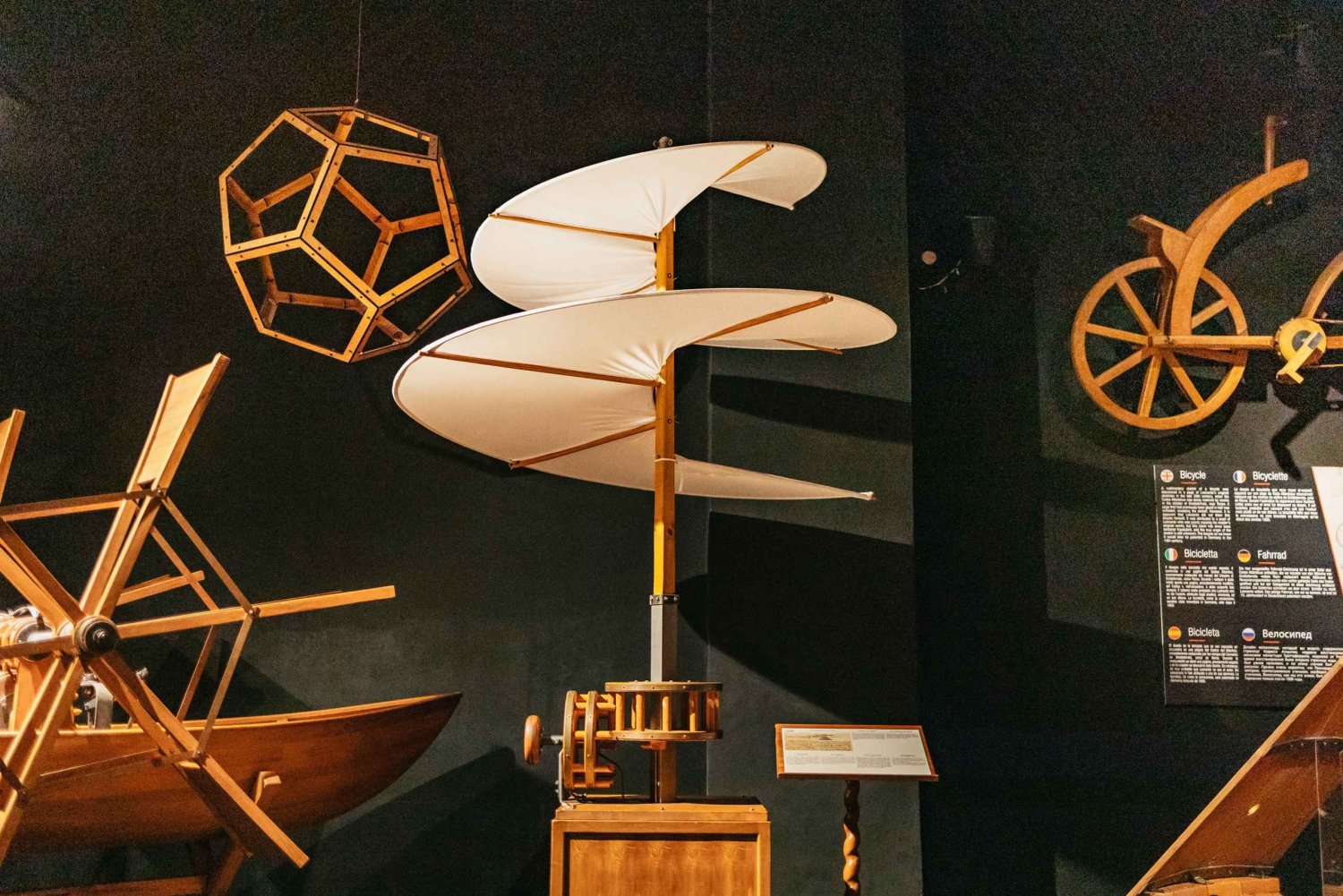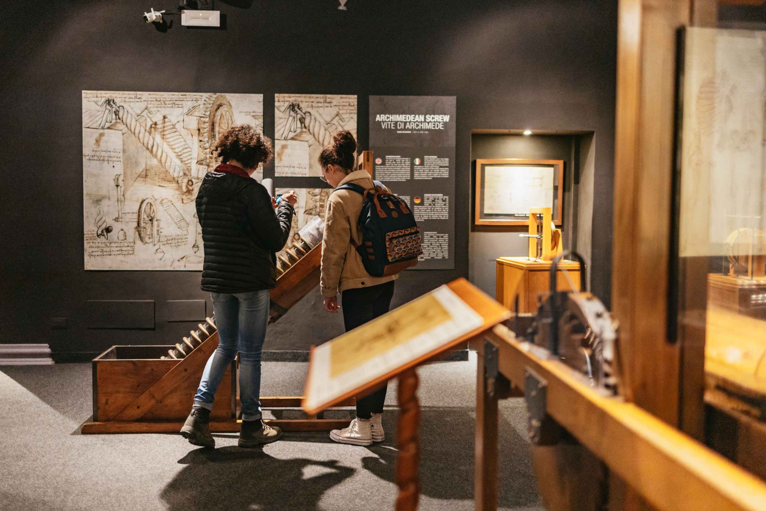 • Inside you can freely try out, with caution, the most beautiful machines designed by Leonardo in his Codices