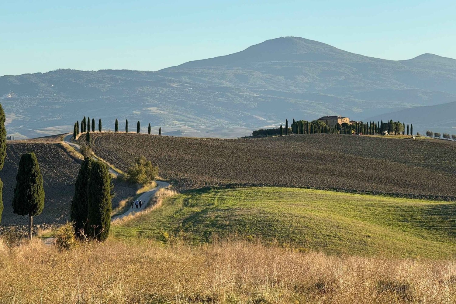 Departure from Florence Set off in the morning aboard your private minivan, relaxing as the city fades into gentle hills and olive groves. Your local driver-guide will share insights along the way, preparing you for the day’s rich discoveries, through the heart of Val d'Orcia, a UNESCO-listed region known for its postcard landscapes, world-class wines, and artisanal flavors. Montalcino – The Home of Brunello Arrive in the medieval town of Montalcino, famous worldwide for its prestigious Brunello wine. Enjoy some free time to wander its charming streets, visit the fortress, or savor a coffee while admiring sweeping views of the surrounding vineyards. Iconic Cypress Road Stop Pause at one of Tuscany’s most famous and photographed locations: a peaceful country road lined with towering cypress trees, set against the backdrop of golden hills. Perfect for stunning photos and a moment to breathe in the quintessential Tuscan landscape. Artisan Cheese & Beer Tasting at a Local Farm Visit a charming, family-run sheep farm near Pienza, where you’ll meet Elia, the passionate cheesemaker lovingly known as the “Shepherd of Val d’Orcia.” This is a truly authentic Tuscan experience, watch and learn the traditional, hands-on process of crafting Pecorino cheese exactly as it’s been done for generations. Elia’s warm hospitality makes you feel like part of the family as you savor a generous tasting of his handcrafted cheeses, paired with homemade jams, local honey, and his one-of-a-kind craft beer. All of this unfolds against the breathtaking, unspoiled backdrop of the Tuscan countryside, offering a rare glimpse into rural life and genuine artisan traditions. ️ Pienza Spend time in Pienza, a UNESCO World Heritage Site famed for its harmonious Renaissance architecture and artisan shops. Stroll through its quaint streets, sample local delicacies, or simply soak up the peaceful atmosphere of this hilltop town. Montepulciano Wine Tasting Head to Montepulciano and descend into centuries-old underground cellars for a guided tasting of the renowned Vino Nobile di Montepulciano & Brunello di Montalcino. Complement the wines with samples of extra virgin olive oil and aged balsamic vinegar, experiencing the true flavors of the region. Return to Florence Relax and enjoy the scenic drive back to Florence in the early evening.Includes