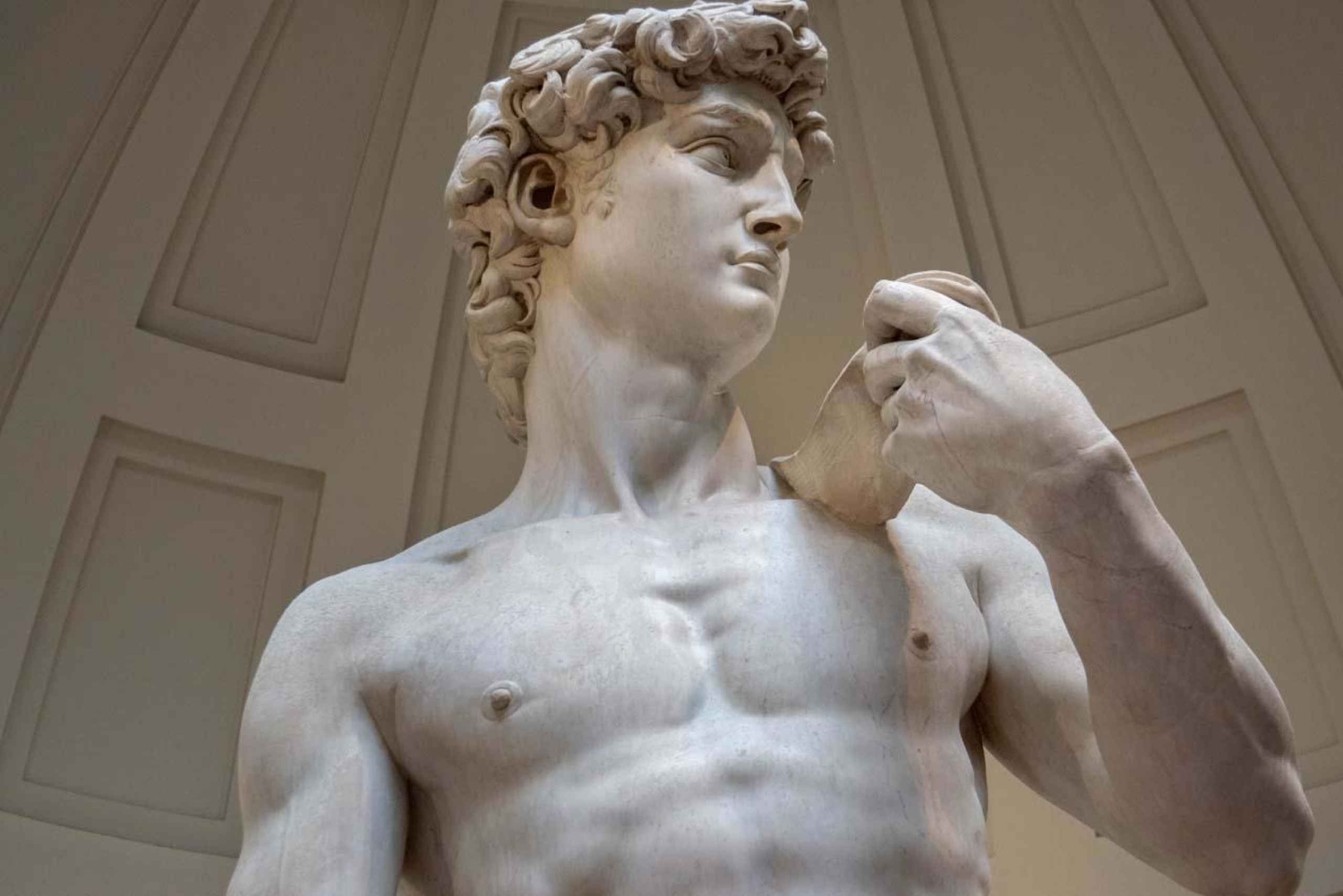 Korosta vierailuasi Firenzessä etuoikeutetulla pääsylipulla Accademia-galleriaan. Ihaile Michelangelon Daavidia ja muita veistoksia ilman vaivalloista jonottamista. Nauti saumattomasta sisäänpääsystä ja mielenrauhasta varatun lipun ja ilmaisen e-kirjan ansiosta. Museoon päästyäsi voit ihailla Daavidin ja Michelangelon teoksia, joissa on näkyviä taltanjälkiä. Tutustu Gipsotecaan, jossa on 1800-luvun firenzeläisten kuvanveistäjien kipsimalleja. Sukella museon eri gallerioihin, joissa esitellään keskiajan ja renessanssin taidemaalareiden mestariteoksia. Ennen vierailun päättämistä nouse ylimpään kerrokseen ihailemaan kolossaalisia keskiaikaisia alttaritauluja.Includes