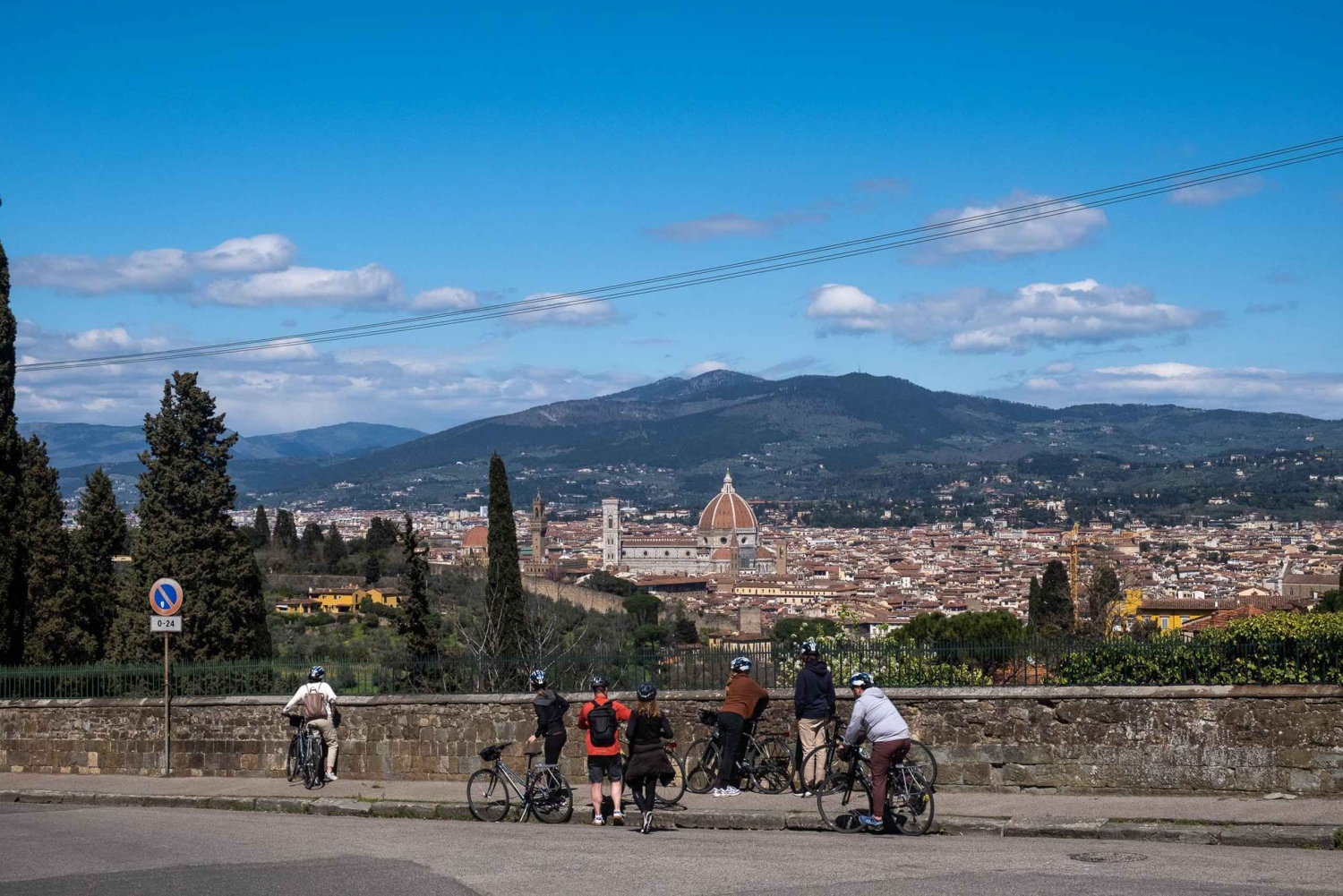 Aloita viehättävältä Oltrarnon alueelta ja aja sähköpyörällä rauhallisilla, panoraamanäkymillä varustetuilla teillä kohti Toscanan kukkuloita. Pysähdy henkeäsalpaavaan San Miniato al Monteen ja nauti yhdestä parhaista näkymistä Firenzeen ylhäältä. Jatkamme ajamista vanhoilla ja kapeilla maanteillä ja pysähdymme välillä ihailemaan kukkulan huipulta avautuvia näkymiä, kunnes saavumme perheomistuksessa olevalle viinitilalle. Täällä voit nauttia viinin, ekstra-neitsytoliiviöljyn ja paikallisten toscanalaisien tuotteiden maistelusta ja oppia samalla niiden perinteisestä valmistuksesta. Rentoutuneena ja virkistyneenä pyöräilet alas takaisin Firenzeen Porta Romanan portin kautta ja päädyt pysähtymään yhdessä suosituimmista käsintehtyjen jäätelöiden myymälöistä – täydellinen tapa päättää Toscanan seikkailusi.Includes