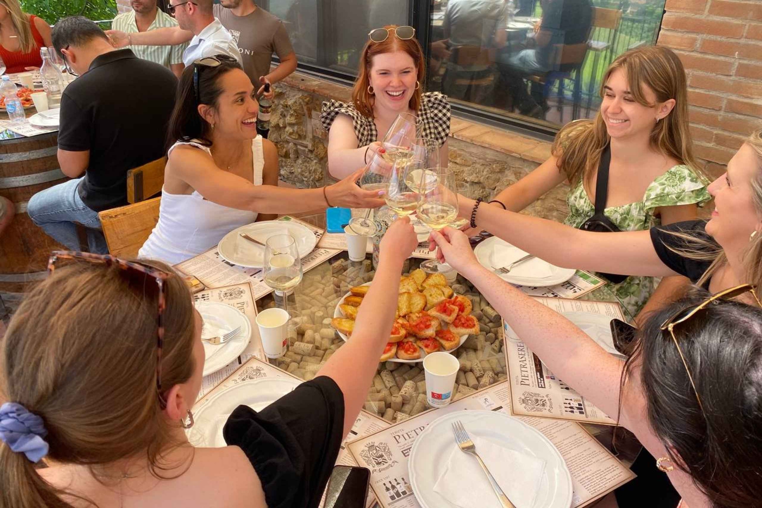 Tämä on 2-päiväinen aktiviteettikombo, jolla näet Toscanan parhaat puolet Firenzessä ollessasi paikallisen ryhmän opastuksella! Päivä 1 - Pisa ja Cinque Terre Ole valmiina, tämä on pitkä päivä! Tavataan oppaamme kanssa klo 07:30 Firenzen päärautatieaseman apteekin edessä koko päivän retkelle tutustumaan Pisaan & Cinque Terren parhaimpiin nähtävyyksiin junalla matkanjohtajamme kanssa. Ensimmäinen pysähdyspaikka on Pisa, jossa sijaitsee Pisan kalteva torni, kastekirkko, Campo Santo ja Duomo di Pisa (Pisan katedraali). Täällä sinulla on vapaata aikaa kävellä aukiolla ja nauttia siitä, että voit ottaa niin monta hauskaa kuvaa kuin mielikuvituksesi sallii nojaavasta tornista. Pisan jälkeen jatkamme kohti Cinque Terreä, joka on kuuluisa luonnonkauneudestaan, maisemareiteistään, upeasta rannikosta ja aurinkoisista rannoistaan. Ensimmäinen pysähdyspaikkamme on Riomaggiore, jossa tutustumiskävelyn jälkeen sinulla on vapaata aikaa pysähtyä syömään jotain lounaaksi. Lounaan jälkeen jatkamme seuraavaan veneiden täyttämään kylään nimeltä Manarola upeita valokuvia varten. Viimeinen kylä on Vernazza, jossa sinulla on aikaa rentoutua rannalla, ottaa aurinkoa tai uida ennen paluuta takaisin Firenzeen (noin klo 20.00). Päivä2 - Toscana Valmistaudu kokopäiväretkelle Firenzestä tutustumaan Toscanaan, maistelemaan ihanaa viiniä 2 viinitilalla ja tutustumaan kuuluisaan San Gimignanoon. Lähdemme Piazza della Calza By Porta Romana -aukiolta sinisen P (pysäköinti ) -kyltin edestä klo 9:40, mikä ei ole liian aikaista, jos haluat nukkua hieman pidempään. Ensimmäinen pysähdys on viinitilalla, jossa maistat 4 erilaista viiniä, 30 vuotta vanhaa balsamiviinietikkaa ja herkullista tryffeli-ekstra-neitsytoliiviöljyä. Jatkamme toiselle viinitilallemme, joka sijaitsee upealla alueella, joka tunnetaan Vernaccia-valkoviinin tuotannosta ja josta on näkymät San Gimignanon kuuluisille torneille. Viinintekijät opastavat sinut viinitarhoilla ja kellareissa ja kertovat viinin ja öljyn valmistuksen salaisuuksista sekä parhaista viinin ja ruoan yhdistelmistä. Iltapäivällä sinulla on vapaata aikaa vierailla ja viettää aikaa kuljeskellen kapeilla kaduilla ostoksilla Toscanan kauneimman keskiaikaisen kaupungin, San Gimignanon, paikallisissa kaupoissa ja katsellen tornien täyttämää horisonttia syödessäsi jäätelöä maailmanmestariksi julistetusta gelateriasta. Paluu Firenzeen ja surulliset jäähyväiset noin klo 17.00.Includes