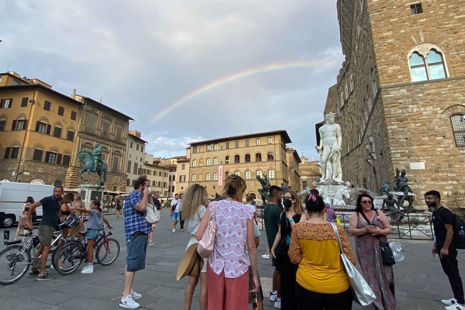 Astu Dan Brownin Infernon maailmaan asiantuntevan paikallisen oppaan johdolla, kun seuraat Robert Langdonin jalanjälkiä Firenzen salaisissa kulmissa. Tutustu jännittävän romaanin ja Tom Hanksin menestyselokuvan salaisuuksiin ja koe kaupungin keskiaikainen puoli kaikessa salaperäisessä loistossaan. Tutustu ikoniseen Palazzo Vecchioon, Firenzen suureen kaupungintaloon, ja sukella kaupungin vuosisatoja vanhaan perintöön. Tutustu vaikutusvaltaiseen Medici-dynastiaan ja heidän poliittisiin juonitteluihinsa ja ihaile samalla arkkitehtonisia maamerkkejä suoraan romaanin sivuilta. Kuljeskele kunnioitusta herättävässä Salone dei Cinquecentossa, jossa tunnet olevasi kuin tarinan hahmo, ja tutustu maantieteellisten karttojen saliin ja Danten kuolinnaamariin. Olitpa Dan Brown -fani tai historian harrastaja, tämä kierros upottaa sinut Firenzen salattuun menneisyyteen ja unohtumattomaan kauneuteen.Includes