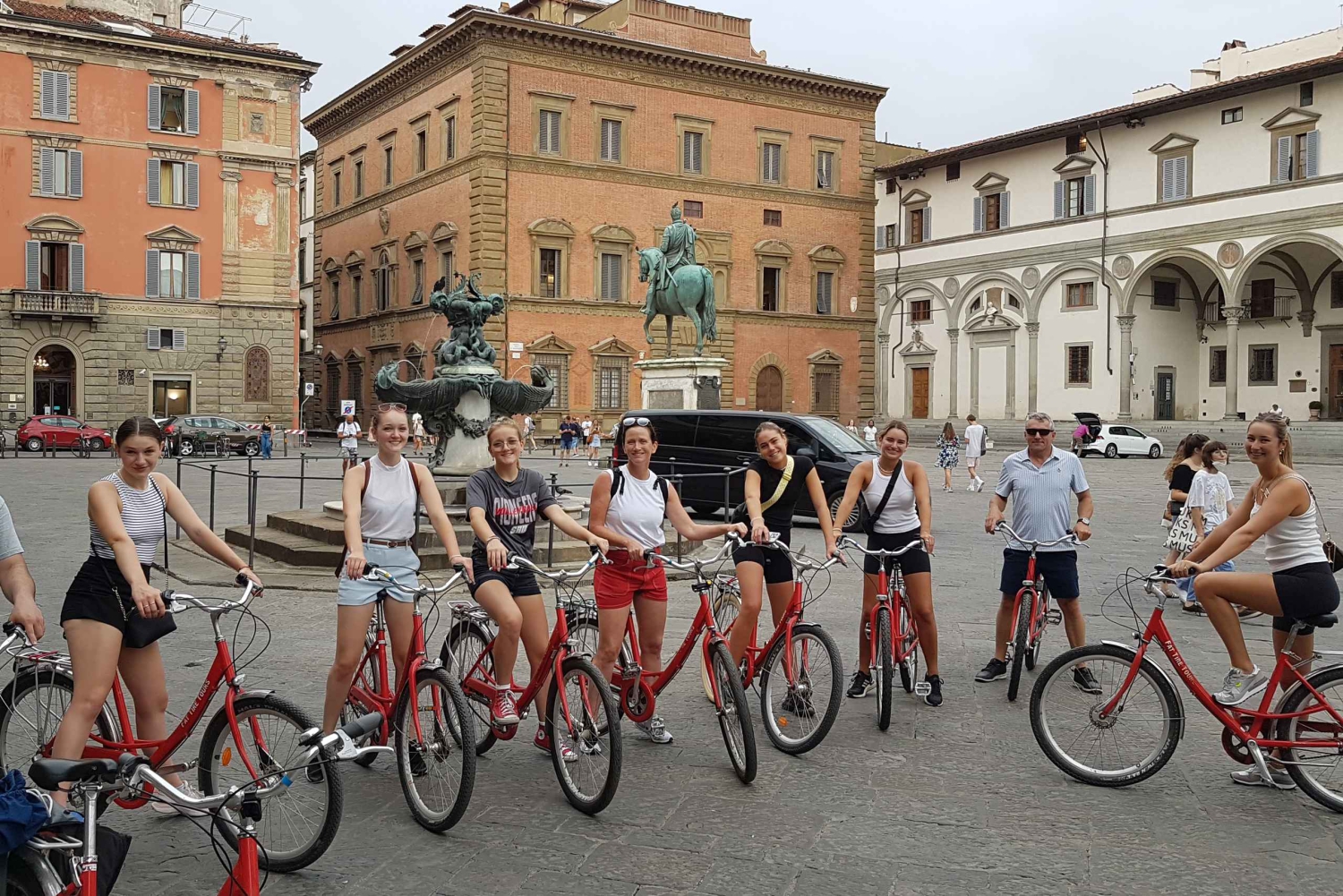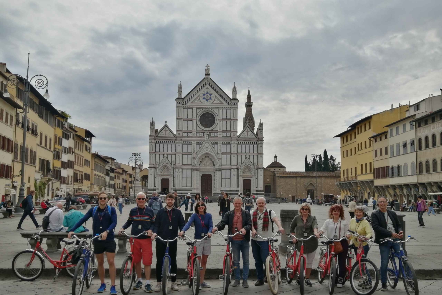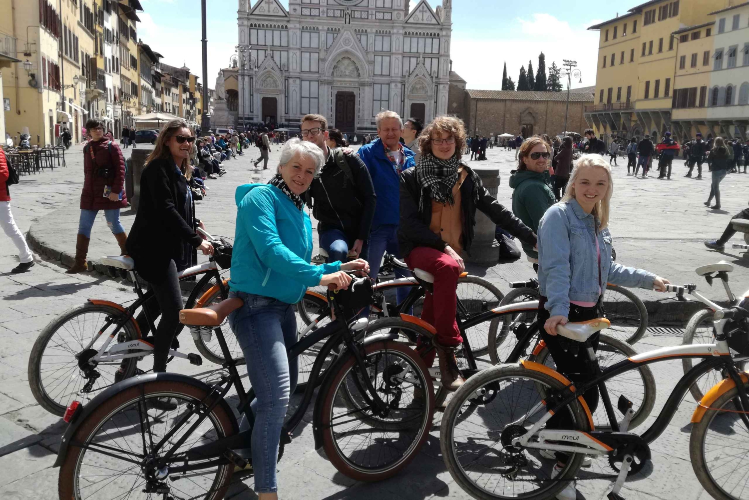 ガイドと共にフィレンツェの見どころを自転車で巡ります。有名なブルネレスキのドーム、オルトラルノ地区、共和国広場などの名所をご覧ください。付属のヘルメットで安全を確保し、ヘッドホンでガイドの声をはっきり聞きましょう。 ガイドと合流し、ヘルメットと自転車のフィッティング。12世紀から14世紀にかけて建設されたブルネレスキのドームまでのんびりと走りましょう。世界で2番目に大きなドームであるこの建築の素晴らしさを堪能してください。 フィレンツェの主要美術館であるウフィツィ美術館へ。ミケランジェロやレオナルド・ダ・ヴィンチのような芸術家による、世界で最も印象的な芸術作品の数々が展示されているこの美術館の外観をご覧ください。 世紀のリザナメント時代に作られた共和国広場に立ち寄ります。世界最大のフランシスコ会教会であり、ミケランジェロ、ガリレオ、マキャベリといった有名なイタリア人の埋葬地でもあるサンタ・クローチェ聖堂へ。 ガイドがフィレンツェの多様で楽しい歴史の詳細を紹介しますので、フィレンツェのユニークな概観をお楽しみください。オルトラルノ地区を訪れ、フィレンツェの景色をお楽しみください。Includes