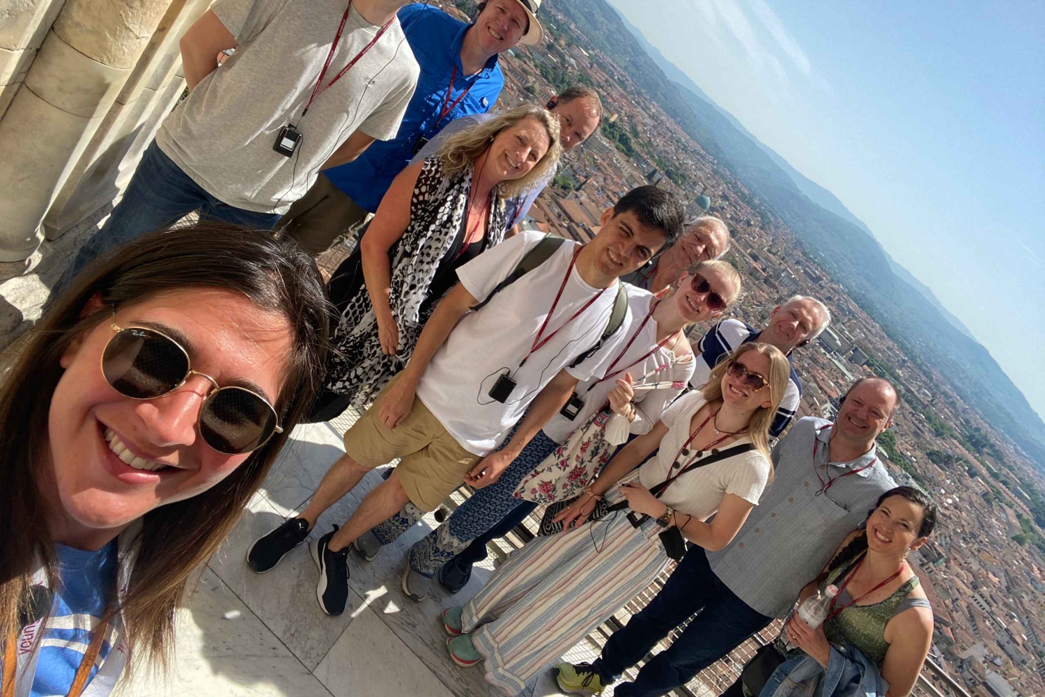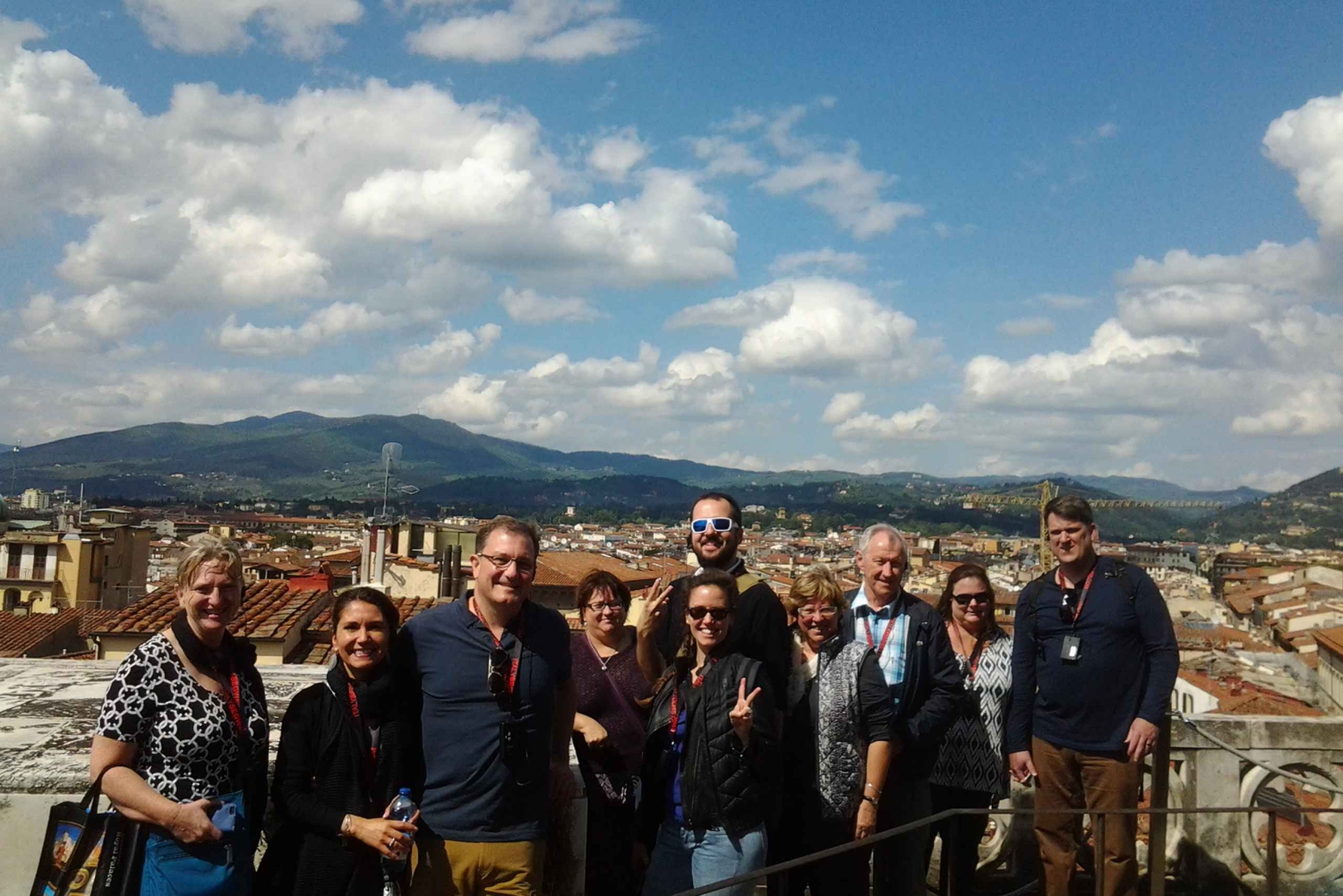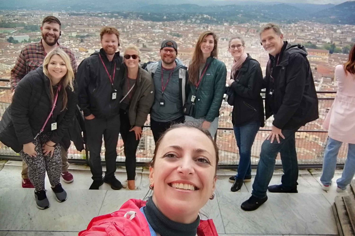 少人数制のこのツアーでは、ガイドがフィレンツェで最も高い建物であるドゥオモの頂上まで、行列に並ぶことなくご案内します。ドームを見学する前に、大聖堂の古いファサードをご覧いただくため、美術館(毎月第一火曜日は洗礼堂が休館)のガイドツアーをお楽しみください。その後、フィレンツェ最大の教会であるカテドラルの内部をガイド付きで見学します。カテドラル見学の後は、ブルネレスキの足跡をたどりながら、かつて彼が街の眺望を楽しむために使った古い階段を上ってみましょう。 463段の階段を上る途中、まるでタイムスリップしたかのような感覚に陥り、このエレガントで古い建物の狭い通路をくねくねと進んでいく。ドゥオーモの内部を飾る44枚のステンドグラスも見どころです。 このツアーでは、特別な視点からブルネレスキの技術を発見することができます。ドームの内側を飾るフレスコ画にも近づきます。Includes