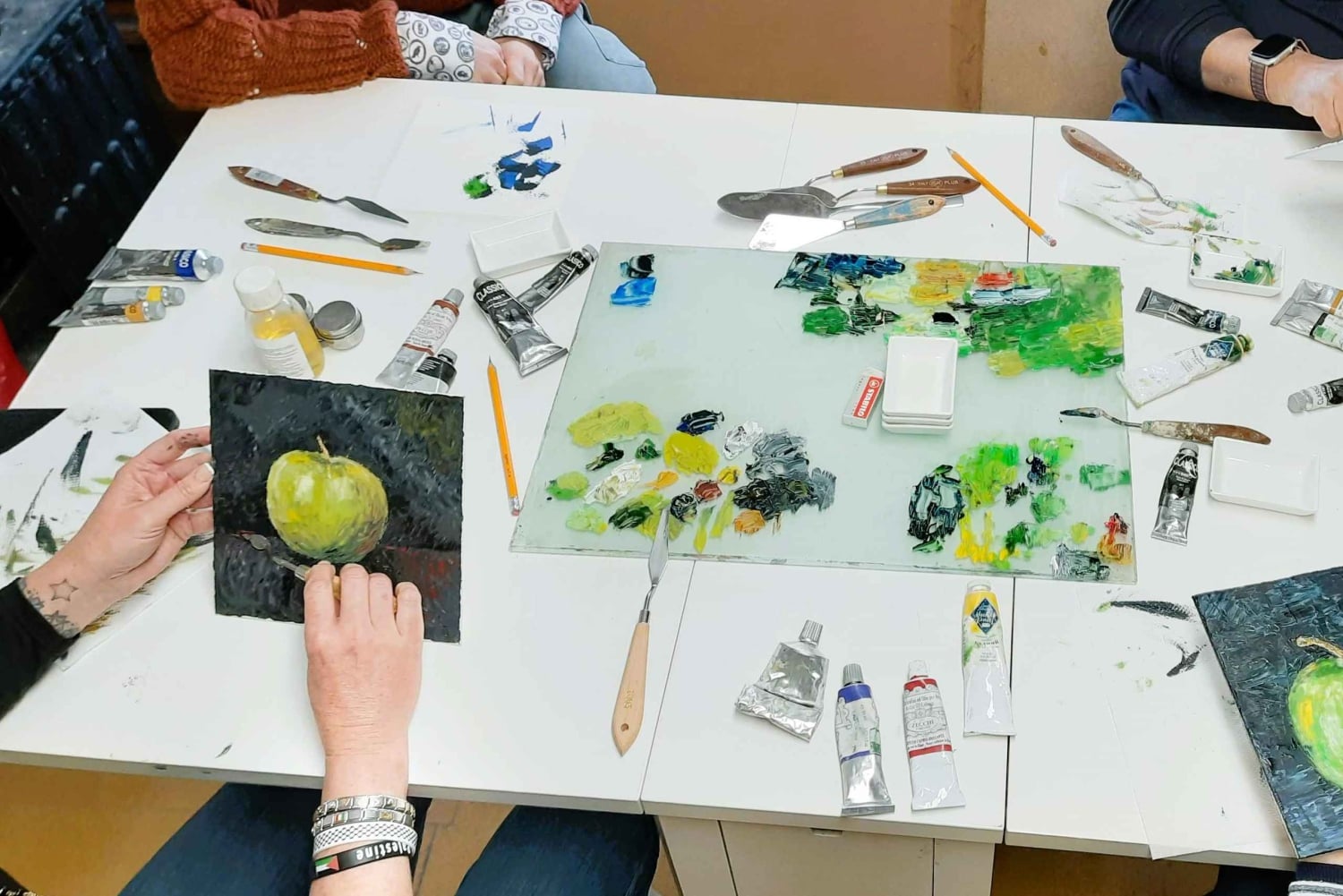 Alle materialen zijn inbegrepen (olieverfkleuren, paletmes, canvaspaneel van 20 cm x 20 cm. snack met water, sap/koffieEasy cancellation