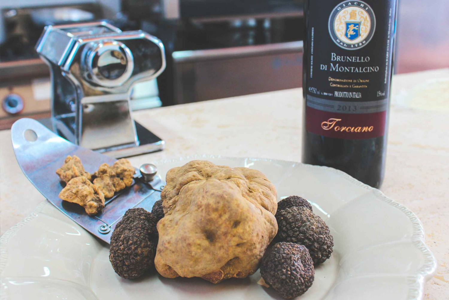 La oss gjøre hvert øyeblikk av besøket ditt avslappende og magisk. Hvis du bor i Firenze - og ønsker å unngå stresset med å kjøre - vil vi trygt kjøre deg fra dør til dør i kjøretøyet vårt. Nyt panoramautsikt over de svingete veiene gjennom vingårder og olivenlunder på vei fra Firenze til Tenuta Torciano Winery. Her vil du bli ønsket velkommen til en fantastisk trøffeljakt akkompagnert av en profesjonell guide med sine trente hunder gjennom eikeskogene som grenser til Tenuta Torciano. Etterpå kan du smake på deres signaturlasagne sammen med andre overdådige toskanske kjøkkenklassikere, mens du blir personlig guidet gjennom deres eksklusive Torciano-vinsmakingsopplevelse av mange toskanske viner og oljer.Includes