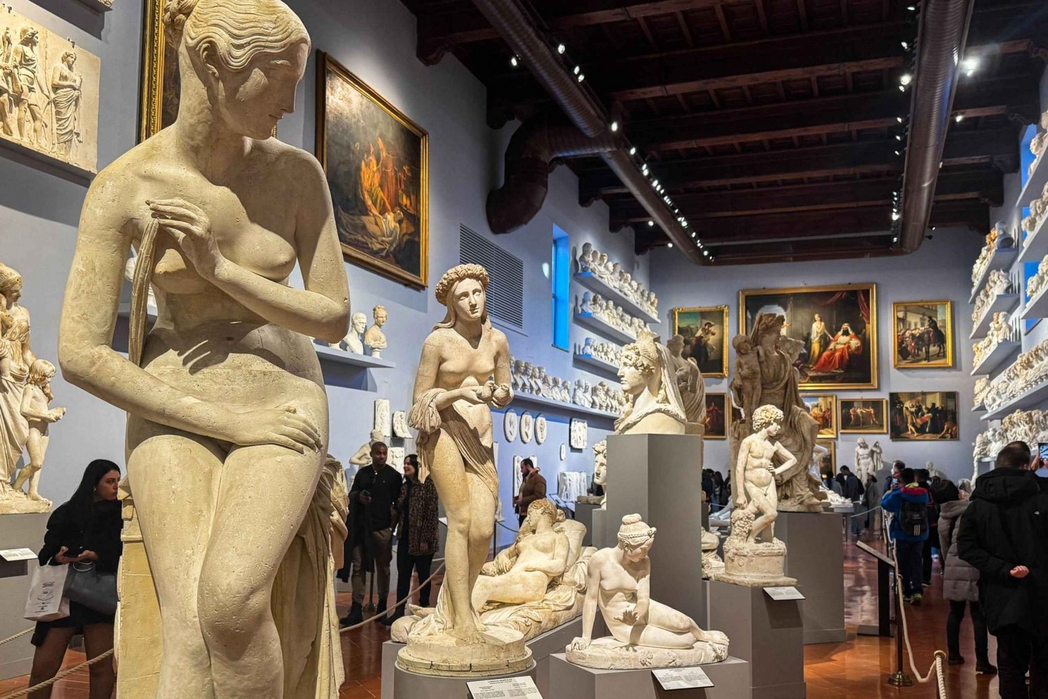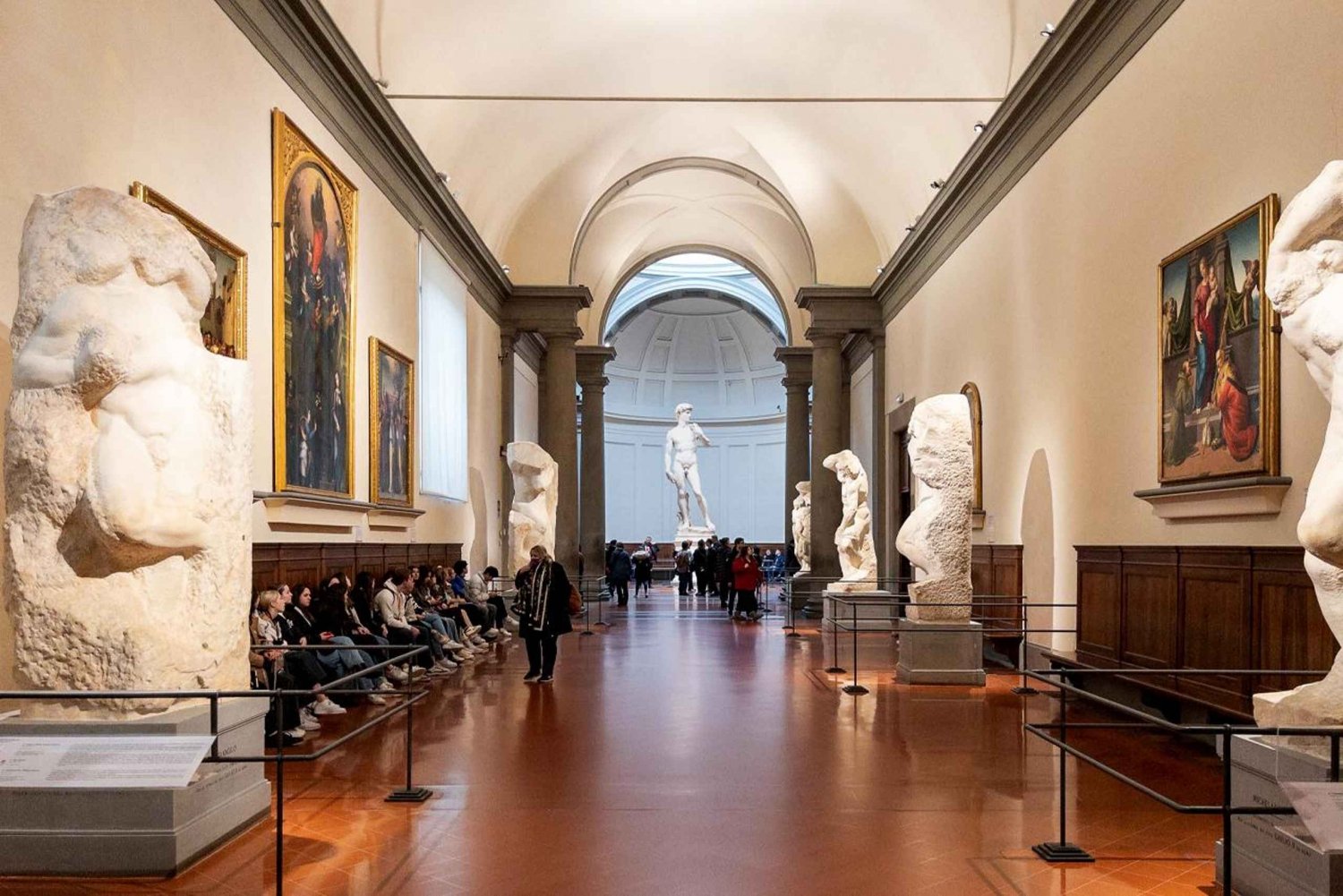 Doświadcz wspaniałości Dawida Michała Anioła jak nigdy dotąd podczas ekskluzywnej wieczornej wycieczki po florenckiej Galerii Accademia. Skorzystaj ze specjalnych wieczornych godzin otwarcia, aby podziwiać Dawida bez zwykłych tłumów. Rozpocznij swoją podróż od prywatnego oglądania kultowego arcydzieła Michała Anioła, Dawida, wygrzewając się w spokojnej atmosferze wieczoru. Poznaj cztery sugestywne rzeźby Więźniów, zagłęb się w fascynujący Pokój Instrumentów Muzycznych i podziwiaj skomplikowane odlewy gipsowe, które ujawniają proces artystyczny stojący za niektórymi z najbardziej znanych rzeźb na świecie. Po wycieczce z przewodnikiem kontynuuj zwiedzanie muzeum we własnym tempie, chłonąc piękno i historię Galerii Accademia w spokojnym, niespiesznym otoczeniu. Nie przegap tej szansy, aby doświadczyć jednego z największych skarbów Florencji w sposób, w jaki niewielu innych może to zrobić.Includes