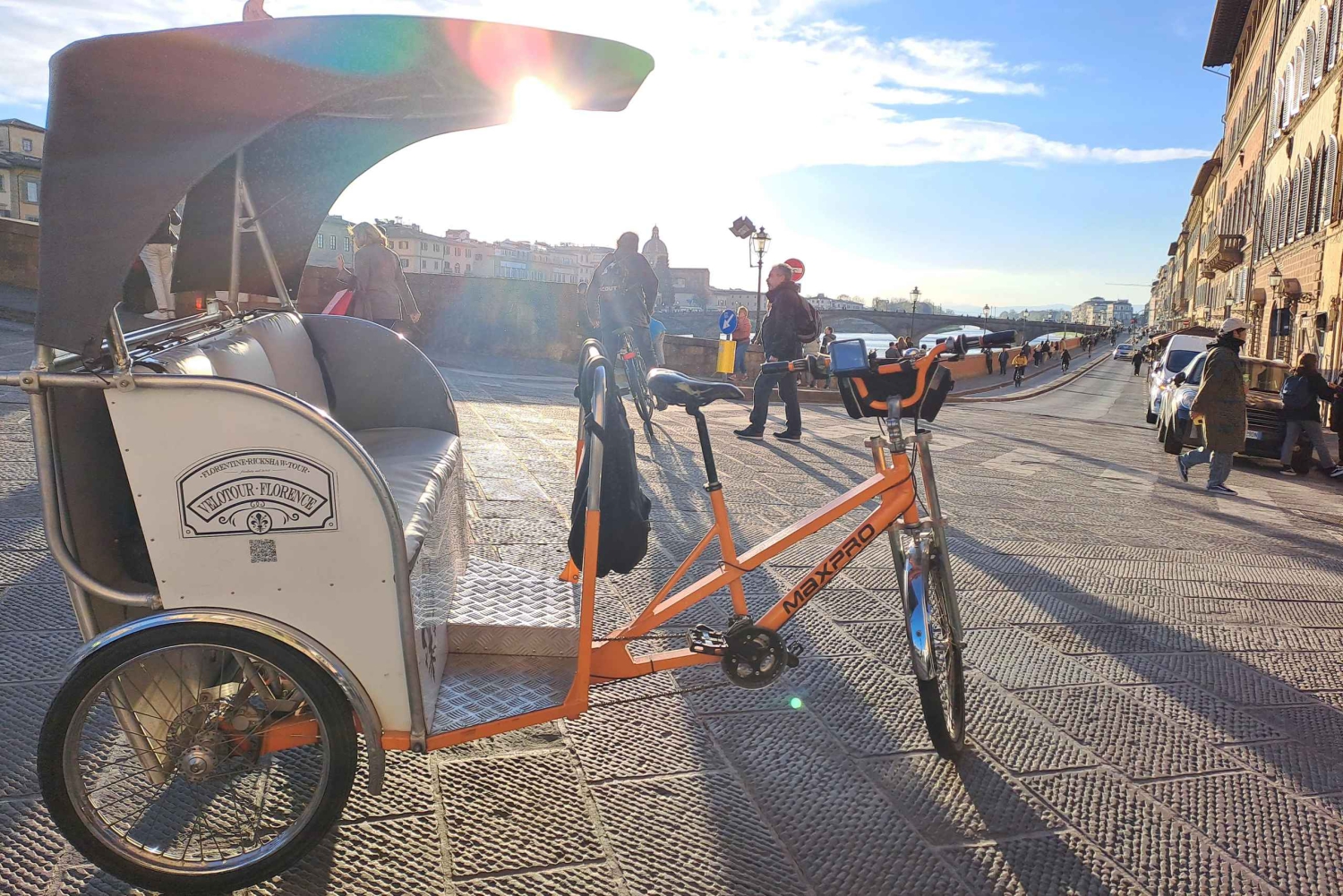 Odkryj Florencję w inny sposób, na pokładzie nowoczesnej i cichej elektrycznej rikszy. Ten prywatny transport łączy Santa Maria Novella z Santa Croce, przejeżdżając przez jedne z najbardziej urokliwych ulic i placów centrum miasta, oferując relaksujący i ekologiczny sposób poruszania się po mieście. Możesz wybrać, gdzie rozpocząć przejazd – w hotelu, na centralnym placu lub przy Santa Maria Novella – i zdecydować, czy zakończyć go w Santa Croce, czy gdzie indziej, zawsze w czasie wynajmu. Kierowca będzie do Twojej dyspozycji, zatrzymując się lub wysadzając Cię, gdzie tylko zechcesz, w zależności od warunków drogowych. Prywatne, komfortowe i spersonalizowane doświadczenie: najprzyjemniejszy sposób na poznanie Florencji w swobodzie i styluIncludes