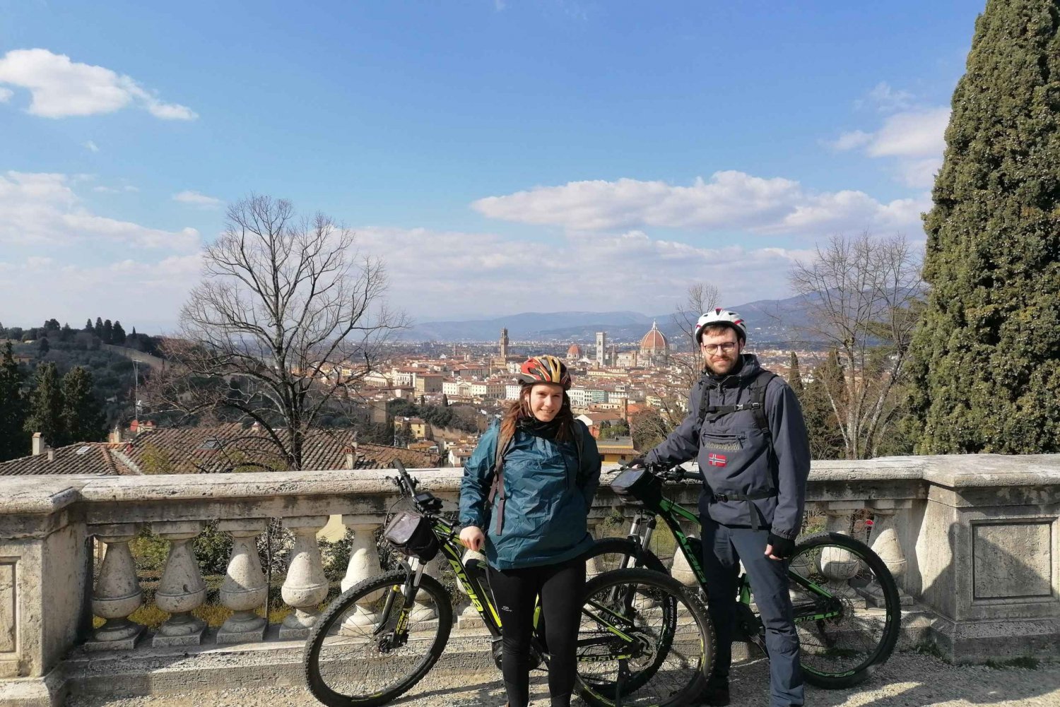 Odpocznij od zgiełku miasta i ciesz się wspaniałą wycieczką na rowerze elektrycznym po malowniczej okolicy z lokalnym przewodnikiem! W ciągu zaledwie 4 godzin zanurz się w jeździe na rowerze, podziwiając zapierające dech w piersiach krajobrazy i delektując się kulinarnymi przysmakami regionu. Zaczynając od naszej przechowalni rowerów w mniej turystycznej dzielnicy Oltrarno, dotrzemy do często pomijanej przez odwiedzających strony Florencji. Będziesz miał okazję zobaczyć starożytne wiejskie drogi, panoramiczne widoki na wzgórza miasta, wspaniałe wille, gaje oliwne i winnice - a wszystko to po południu! Po zwiedzaniu okolicy zatrzymamy się przy kościele San Miniato al Monte, aby podziwiać nasz ulubiony widok na Florencję. Naszym ostatecznym celem jest fantazyjne wiejskie miejsce, które jest również farmą produkującą oliwę z oliwek. Tutaj będziesz miał okazję zobaczyć ich drzewa oliwne i dowiedzieć się o ręcznie zbieranej oliwie z oliwek z pierwszego tłoczenia. Tam skosztujesz toskańskiej przystawki z lokalnych produktów w połączeniu z kieliszkiem wina Chianti i oliwy z oliwek z pierwszego tłoczenia z domowym chlebem. Po przerwie wskoczymy z powrotem na rower elektryczny i wrócimy do punktu wyjścia, kończąc nasze wspólne doświadczenia.Includes