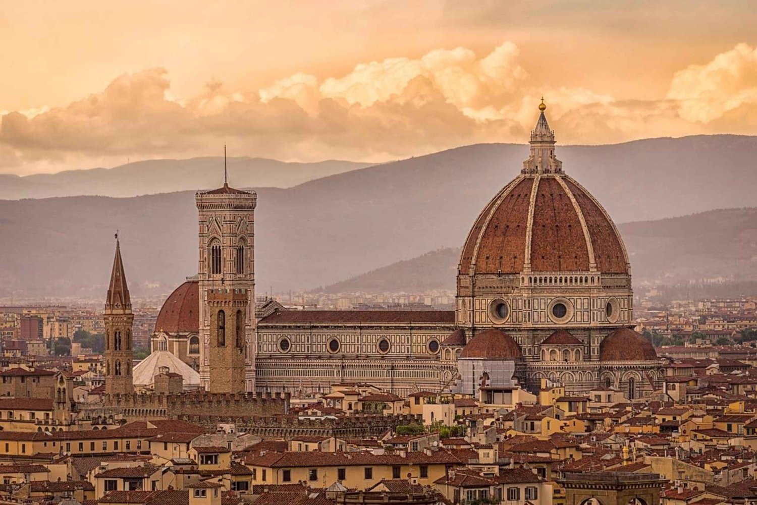 Wyrusz w niezapomnianą wycieczkę 1-dniową z Rzymu do Florencji, jednego z najsłynniejszych miast na świecie pod względem sztuki, historii i kultury. Podróżuj wygodnie włoskim szybkim pociągiem i dotrzyj do Florencji w nieco ponad godzinę, gotowy do odkrycia głównej atrakcji tego renesansowego miasta. Zrelaksuj się podczas podróży na północ przez włoską wieś, zanim dotrzesz do serca Florencji. Pomiń kolejkę do Galerii Akademii i zobacz arcydzieło Michała Anioła, posąg Dawida, wraz z innymi renesansowymi skarbami. Odkryj słynne miejsca Florencji, zaczynając od wspaniałego Duomo, znanego z katedry, marmurowej fasady i panoramy z kopuły Brunelleschiego. Spaceruj po Piazza della Signoria, gdzie rzeźby takie jak Fontanna Neptuna i replika Dawida Michała Anioła ożywiają historię. Przejdź się po malowniczym Ponte Vecchio, średniowiecznym moście we Florencji, wzdłuż którego znajdują się sklepy z biżuterią, i odwiedź Galerię Uffizi, gdzie znajdują się arcydzieła Leonarda da Vinci, Botticellego i Michała Anioła. Aby podziwiać jeden z najlepszych widoków we Włoszech, udaj się na Piazzale Michelangelo i podziwiaj panoramę miasta z góry. Przed powrotem do Rzymu poznaj kulinarne tradycje Florencji, takie jak bistecca alla fiorentina, świeży makaron i lokalne wino Chianti Po dniu pełnym sztuki, historii i włoskiego uroku, wsiądź do szybkiego pociągu z powrotem do Rzymu, zainspirowany pięknem renesansu.Includes