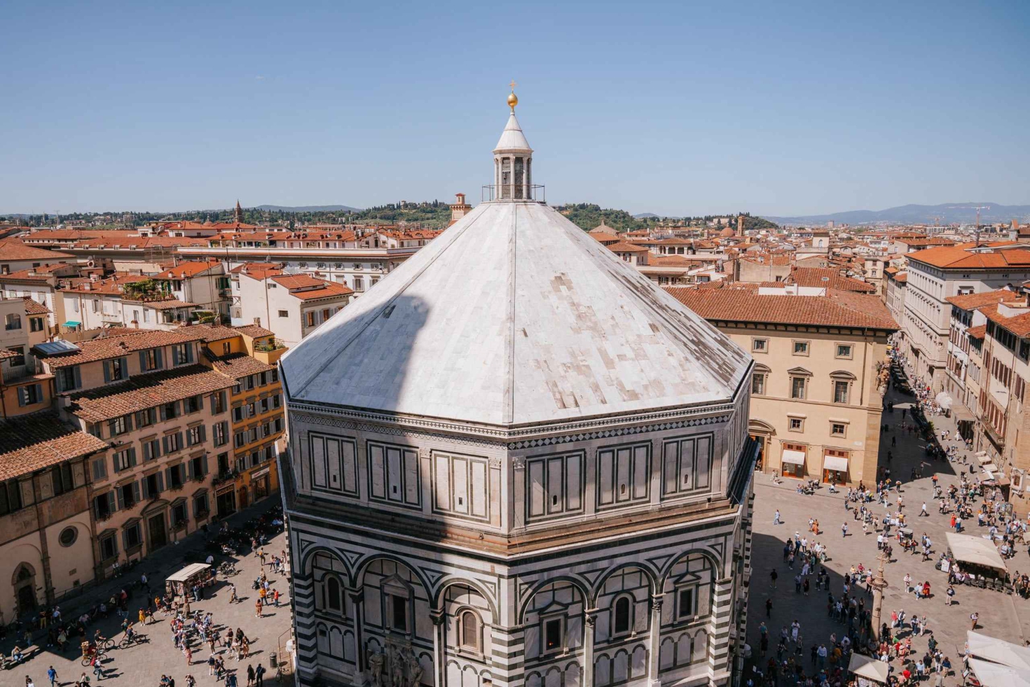 Os tesouros renascentistas de Florença são melhor apreciados sem multidões — e este tour VIP permite-te fazer exatamente isso, com opções para começar de manhã cedo ou no final da tarde para uma experiência tranquila e íntima. Comece o seu tour com entrada sem fila na Galeria da Academia, lar do icónico David de Michelangelo. O seu guia especializado irá partilhar informações sobre David e os 'Escravos' inacabados de Michelangelo, proporcionando-lhe uma compreensão mais profunda destas obras-primas num ambiente descontraído. Em seguida, siga para a Piazza del Duomo para admirar as famosas portas de bronze do Batistério, conhecidas como as 'Portas do Paraíso'. Depois, aproveite o acesso exclusivo sem fila aos terraços raramente abertos da catedral de Florença. Deste ponto privilegiado, aprecie vistas deslumbrantes e veja de perto os detalhes intricados da arquitetura do Duomo. Após o tour guiado, você tem a opção de subir na cúpula de Brunelleschi no seu próprio ritmo usando o seu ingresso sem fila. Não importa se você começa logo cedo ou no final do dia, o horário tranquilo significa que você evitará as multidões e poderá realmente mergulhar na beleza de Florença. Esta experiência em pequenos grupos combina acesso exclusivo, orientação especializada e a liberdade de explorar um dos marcos mais emblemáticos da Itália sem a agitação habitual.Includes