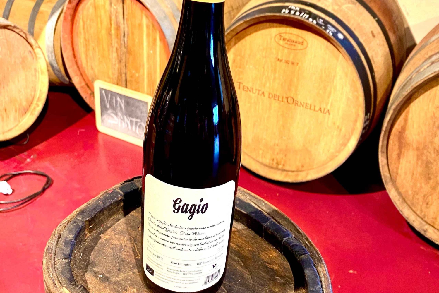 - Bebe um copo do delicioso vinho toscano Dalle Nostre Mani, produzido organicamente