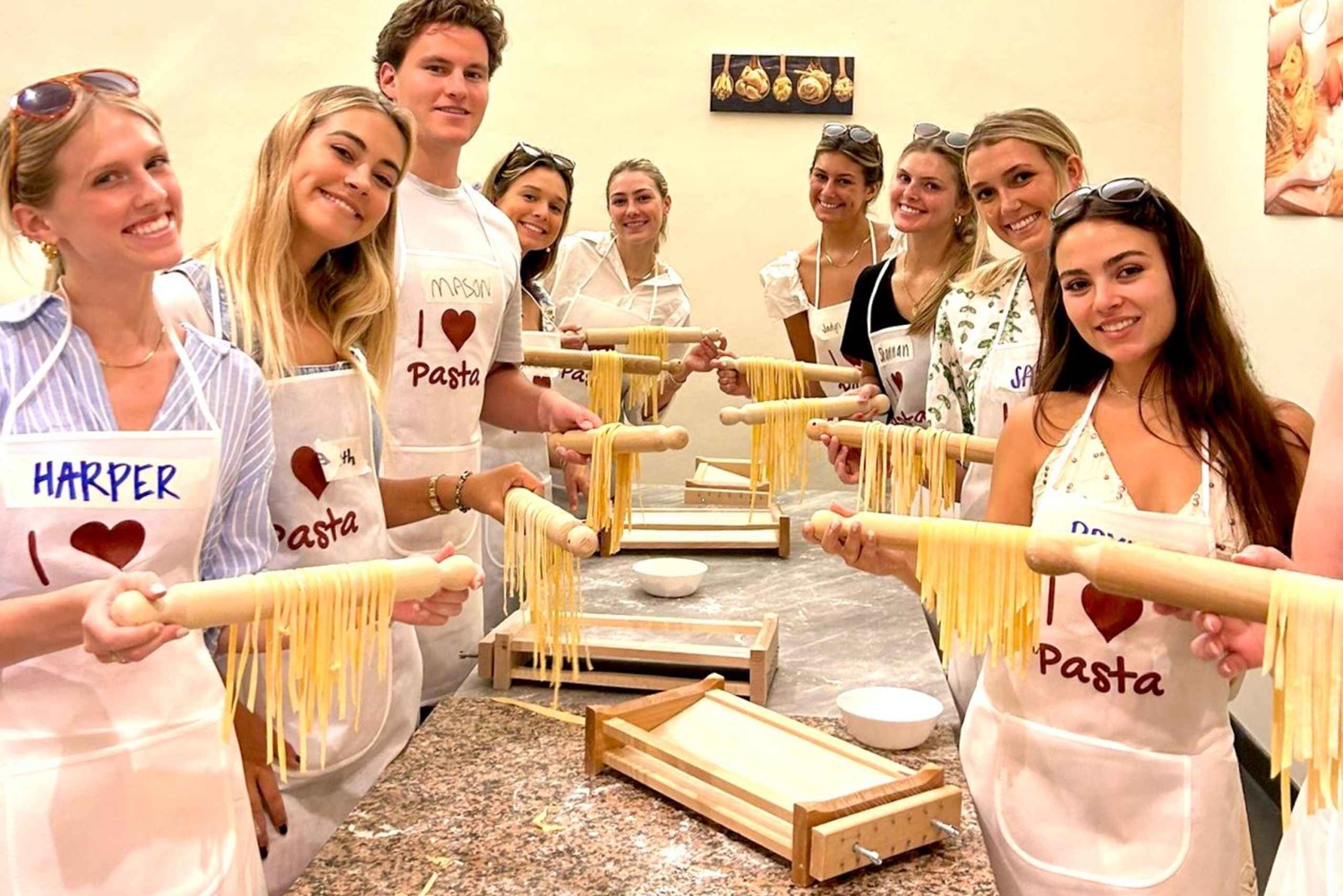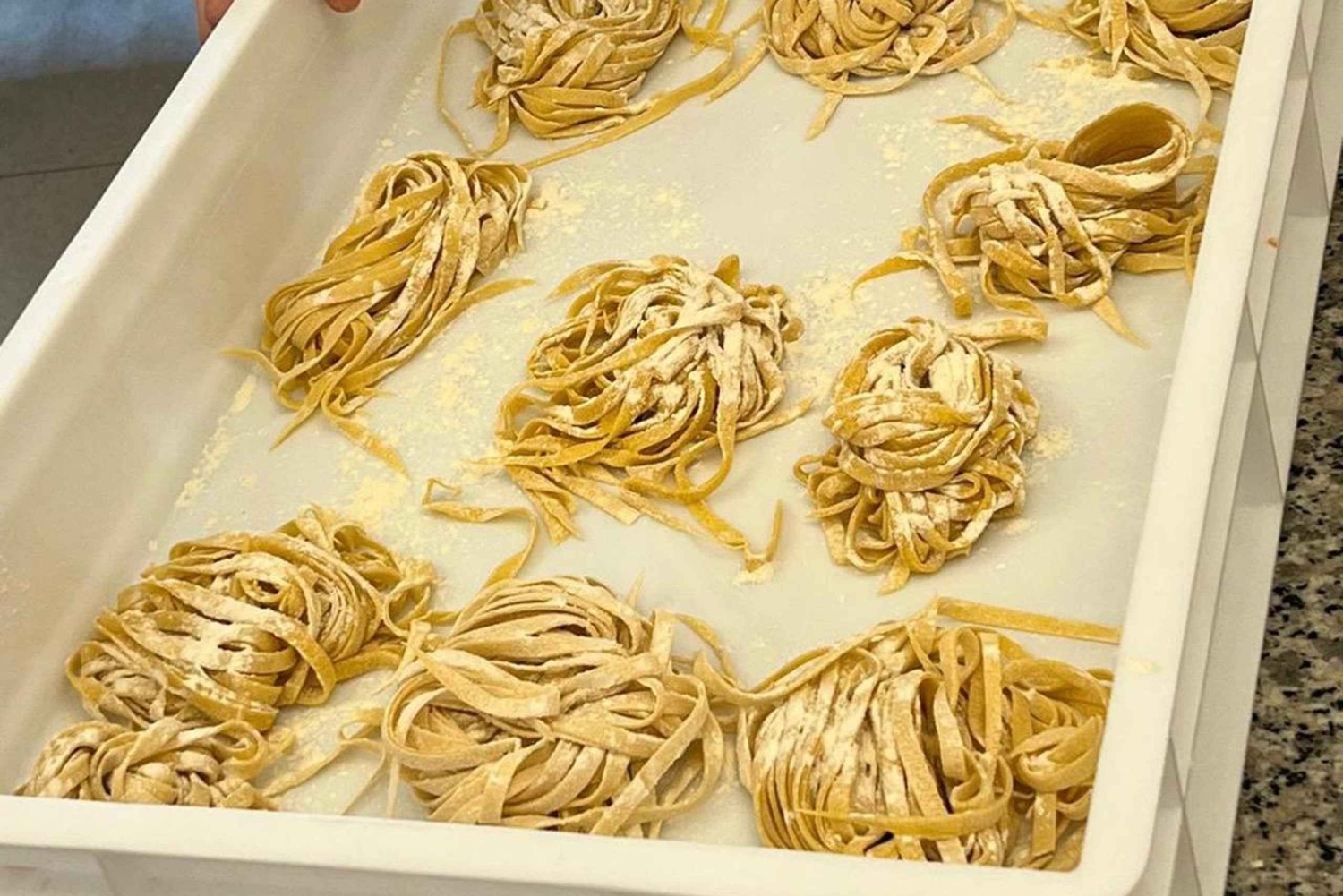 Mergulha na paisagem toscana com 3 experiências diferentes num só dia! Vamos encontrar-nos em Florença e um motorista licenciado vai levar-te à nossa quinta em Fucecchio, mesmo no coração da Toscana, em apenas 45 minutos. O que vamos fazer? 1 – Passeio pelo campo Passeia por campos ondulantes, oliveiras centenárias e vinhas enquanto desfrutas da paisagem, das plantas e aprendes sobre a nossa história e a nossa quinta. É a oportunidade perfeita para tirar fotos incrÃveis da paisagem toscana autêntica. Podes até conhecer o nosso simpático porquinho de estimação! Em setembro, podes provar uvas frescas diretamente da vinha. 2 – Visita e degustação na adega Visita a nossa adega e prova 5 vinhos toscanos orgânicos — brancos e tintos — envelhecidos diretamente do barril, além do Vin Santo, um vinho doce tradicional. Também vais provar o nosso azeite virgem extra e ver um pequeno vÃdeo sobre a nossa missão. Terás a oportunidade de comprar vinhos a preços de adega ou encomendá-los para envio. 3 – Fazer massa fresca No final do dia, os nossos chefs profissionais vão ensinar-te os segredos de fazer massa fresca, como tortelli ou ravioli! A massa será combinada e cozinhada em conjunto, como fazemos nas nossas casas em Itália (não é possÃvel cozinhar individualmente). Depois, vamos sentar-nos e saborear tudo juntos numa mesa comprida — tal como uma verdadeira famÃlia italiana. Durante a refeição, será servido vinho extra e um dos nossos anfitriões garantirá que és a estrela da experiência! Os grupos estão limitados a um máximo de 20 participantes, por isso há muitas oportunidades para socializar. Para o teu conforto, oferecemos transporte opcional de/para o centro de Florença num miniautocarro privado de 20 passageiros com motorista, evitando a necessidade de uma viagem de comboio de regresso. Este serviço custa 20 € por pessoa (ida e volta) e tens de pagar diretamente ao motorista com cartão antes da viagem de regresso. Para a sessão da manhã, o regresso ao ponto de encontro é aproximadamente à s 16h30–17h00. Para a sessão da tarde, o regresso é por volta das 21h30–22h00. Os horários podem variar — fica atento à s mensagens que receberes para atualizações.Includes