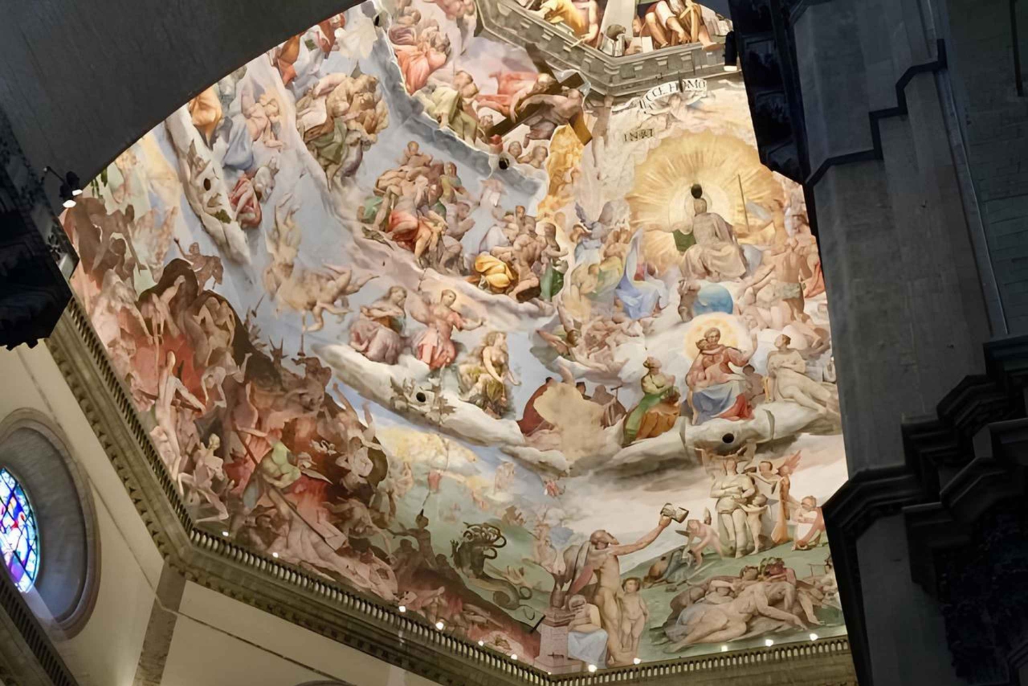 Evita esperar horas na fila em Florença com bilhetes sem filas para a Cúpula de Brunelleschi e a Cúpula num passeio a pé. Obtém informações detalhadas sobre a cúpula de Santa Maria del Fiore, o símbolo da cultura renascentista florentina, com um guia de áudio e um guia turístico ao vivo. Evita as filas e entra diretamente para ver a Cúpula de Brunelleschi. Na tua visita ao interior da Cúpula, aproveita para ver os muitos frescos e vitrais. Admira os frescos do Juízo Final de Zuccari e Giorgio Vasari. Depois, sobe os 463 degraus para chegares ao topo da Cúpula. Obtém comentários de áudio profissionais pré-gravados em muitos idiomas diferentes. Satisfaz a tua curiosidade e faz ao guia turístico todas as perguntas que possas ter sobre a obra de arte e a arquitetura.Includes