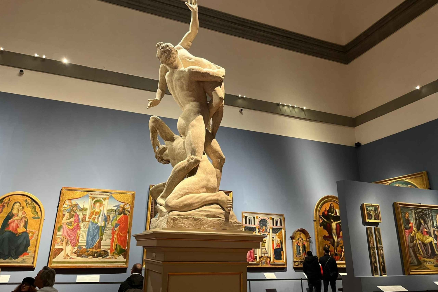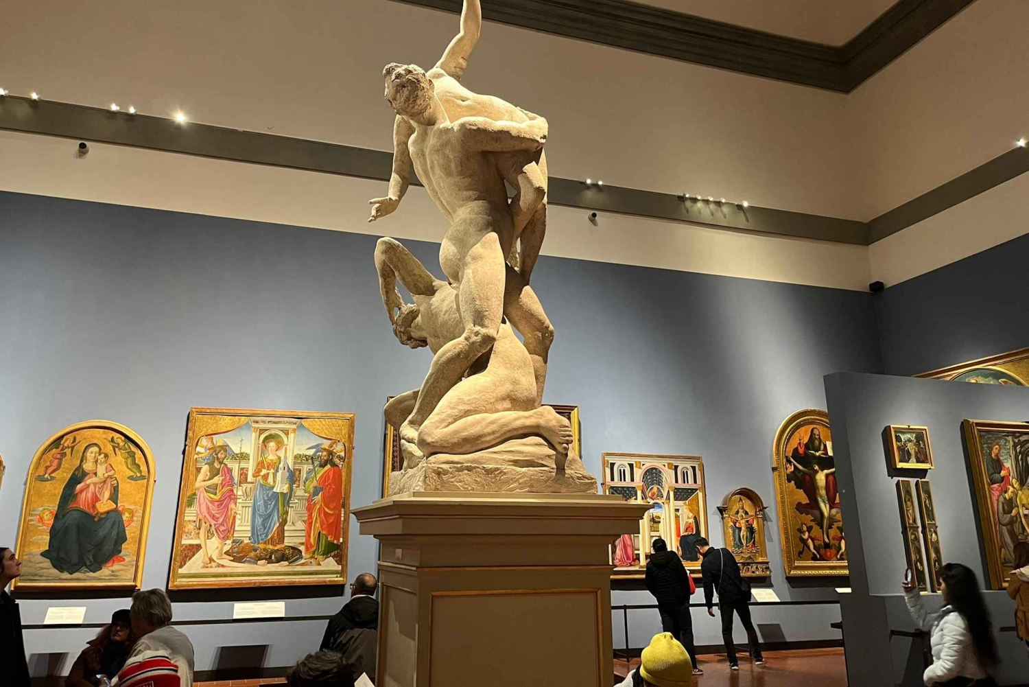 Совершите незабываемое путешествие с нашей экскурсией по Флоренции, предназначенной для тех, кто хочет погрузиться в красоту города без долгих ожиданий! В сопровождении сертифицированного местного гида Вы познакомитесь с шедеврами двух самых знаменитых музеев, а также откроете для себя исторический центр, внесенный в список Всемирного наследия ЮНЕСКО, и самые очаровательные кварталы Флоренции. Микеланджело и галерея Академии Наша экскурсия начинается в Галерее Академии, где, благодаря пропуску без очереди, Вас сразу же встретит 'Давид' Микеланджело, икона Флоренции и универсальный символ художественного совершенства. Откройте для себя его увлекательную историю и секреты, лежащие в основе его создания, а также другие бесценные произведения эпохи Возрождения. В потрясающей 'Трибуне де Фабрис' Вы также сможете полюбоваться пятью другими впечатляющими скульптурами Микеланджело: четырьмя узниками и Святым Матфеем. Страдивари, музыка и искусство эпохи Возрождения Мы продолжим посещение секции, посвященной коллекции музыкальных инструментов семьи Медичи, где Вы сможете полюбоваться самой ценной в мире скрипкой Страдивари, самым старым фортепиано и другими необычными инструментами. Вы также посетите Гипсотеку Бартолини, где представлены поэтичные гипсовые слепки, коллекция величественных алтарных предметов с золотым фоном, а также подборка картин эпохи Возрождения 15-го и 16-го веков. Пьяцца дель Дуомо: секреты и красота После этих незабываемых впечатлений мы отправимся на Пьяцца дель Дуомо, где Вы откроете тайны Купола Брунеллески и полюбуетесь золотыми деталями Врат Рая на Баптистерии. Будьте очарованы колокольней Джотто и великолепным собором Санта-Мария-дель-Фьоре с его потрясающим фасадом из полихромного мрамора. Пьяцца делла Синьория и Уффици: Сердце Флоренции Мы пересечем площадь Республики и всего через несколько минут окажемся на площади Синьории, где находится великолепный Палаццо Веккьо, историческая резиденция правительства Флоренции и резиденция семьи Медичи XVI века. Полюбуйтесь необыкновенными скульптурами Лоджии деи Ланци, а затем продолжите путь в Галерею Уффици, один из самых престижных художественных музеев в мире. Шедевры Уффици: От Джотто до Караваджо В течение двух часов Ваш гид проведет Вас по захватывающим дух фресковым залам Галереи Уффици, где хранятся величайшие шедевры итальянского искусства. Среди выставленных сокровищ Вы найдете работы Джотто, Боттичелли, Микеланджело, Леонардо да Винчи, Рафаэля, Тициана, Караваджо и многих других мастеров эпохи Возрождения. И самое приятное? Вы можете оставаться в Галерее Уффици до самого закрытия, что позволит Вам полностью погрузиться в этот необыкновенный опыт. Забронируйте свой тур прямо сейчас и откройте для себя лучшие стороны Флоренции в незабываемом путешествии через искусство, историю и культуру!Includes