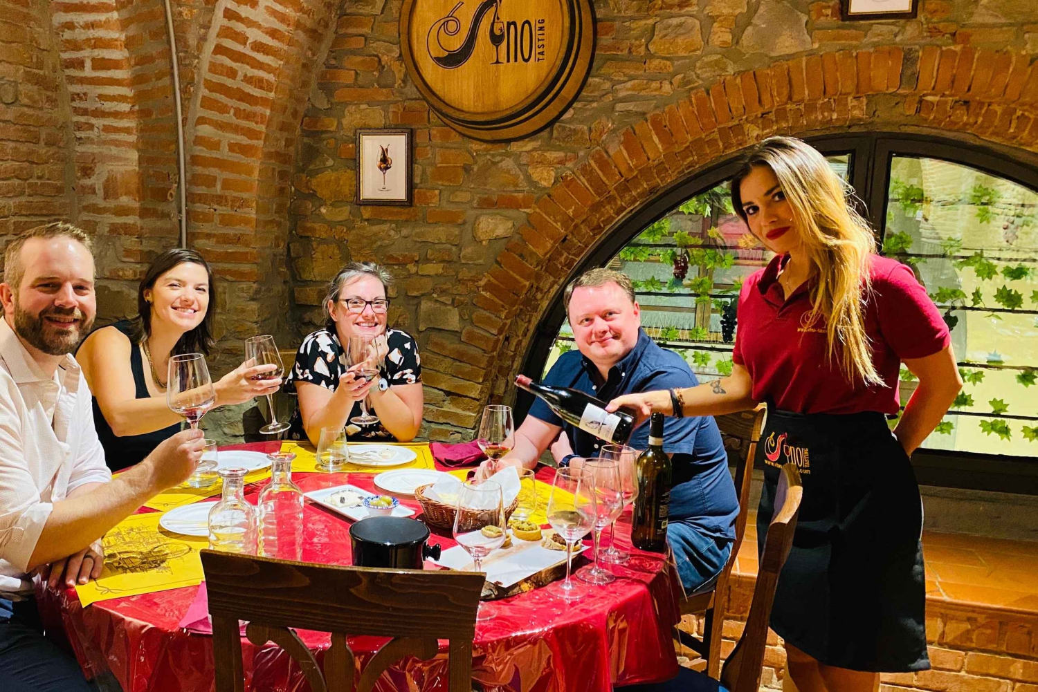 Utforska de viktigaste landmärkena på denna omfattande rundtur i Duomo-komplexet i Florens. Denna tur ger dig möjlighet att utforska alla delar av Duomo-komplexet. När du har träffat vår guide tar guiden dig med på en rundtur på Piazza del Duomo och förklarar för dig om det fascinerande religiösa centret. Efter att ha sett Duomo från alla sidor av torget kommer du att komma till det åttkantiga baptisteriet av St John i Florens. Guiden kommer att visa dig att baptisteriet är känt för sitt magnifika tak i gyllene mosaik och de slående bronsdörrarna som är kända som Paradisets portar. Senare besöker du det magnifika Duomo-museet i Florens. Museet rymmer över 700 mästerverk från medeltiden och renässansen, bland annat Michelangelos Pietà Bandini. Här finns också otroliga mästerverk som portarna till baptisteriet, Donatellos skulpturer och den ursprungliga kupolens träställningar. Guiden visar också några av de mest kända konstverken som Michelangelo och Donatello har gjort. När turen tar slut släpper guiden av dig vid ingången till kupolkupolen, en riktig showstopper men det enda sättet att se kupolens insida på nära håll och njuta av den fantastiska utsikten över Florens är att klättra upp för de 463 trappstegen (det finns ingen hiss). Cupola som ritades och byggdes av Filippo Brunelleschi har trånga korridorer att klättra upp (och ner) i. Detta beror på att de hantverkare som byggde katedralen för underhåll aldrig tänkte sig att den skulle vara öppen för allmänheten. På kupolens insida kan du beundra Giorgio Vasaris fresker av Yttersta domen (1572-9) på nära håll och på vägen upp till toppen får du en intressant förklaring till freskerna. Titta ner och på basen, precis ovanför trumman, ser du att Baccio D'Angelo började lägga till en balkong 1507 och hur en av de åtta sidorna var oavslutad, och än idag är de andra sju sidorna kvar i grovt tegel! När du klättrar upp till toppen av kupolen kommer du att bli förtrollad av panoramautsikten över Florens stad framför dina ögon. När du har besökt Kupolen med din förbeställda tidsinställda biljett har du möjlighet att också besöka interiören i Santa Maria del Fiore-katedralen och Santa Reparata och att klättra upp i Giottos klocktorn i din egen takt och tid. Berika din tur med valfria tillägg: - Vinprovning: Om du har en speciell kärlek till allt som är italienskt, lägg till en toskansk vinprovning till din upplevelse. Tillbringa tid med en vinexpert och smaka på olika viner från Toscana medan du njuter av en tallrik med toskanska aptitretare.Includes