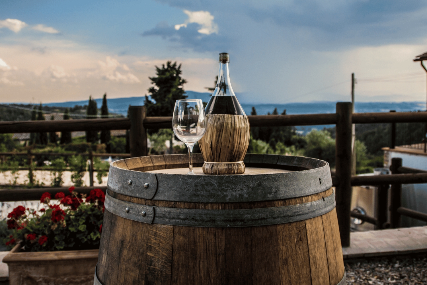 - ett glas Vernaccia lokalt producerat, utmärkt vitt vin i San Gimignano