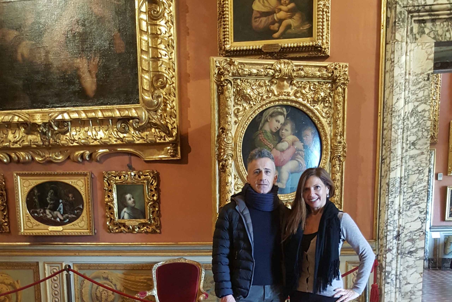Utforska det tidigare residenset för de styrande familjerna i Toscana på en privat tur i det magnifika Pitti-palatset, nu ett komplex av fantastiska museer i stadsdelen Oltrarno i Florens. Se artefakter som tillhörde den mäktiga Medici-familjen och andra härskare i storhertigdömet Toscana, inklusive mästerverk av Raphael och Titian i huvudgalleriet Palatine Gallery. Promenera i Boboli-trädgårdarna i renässansstil bakom Pitti-palatset och upptäck en samling skulpturer från 1500- till 1700-talet. Beundra Neptunusfontänen i den romerska amfiteatern och mycket mer.Includes
